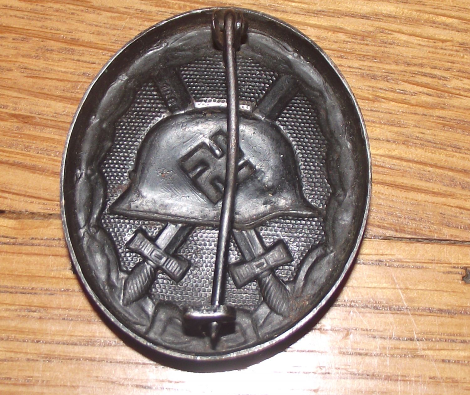 WW1 base metal German Army Wound pin Badge Medal Helmet & Crossed Swords