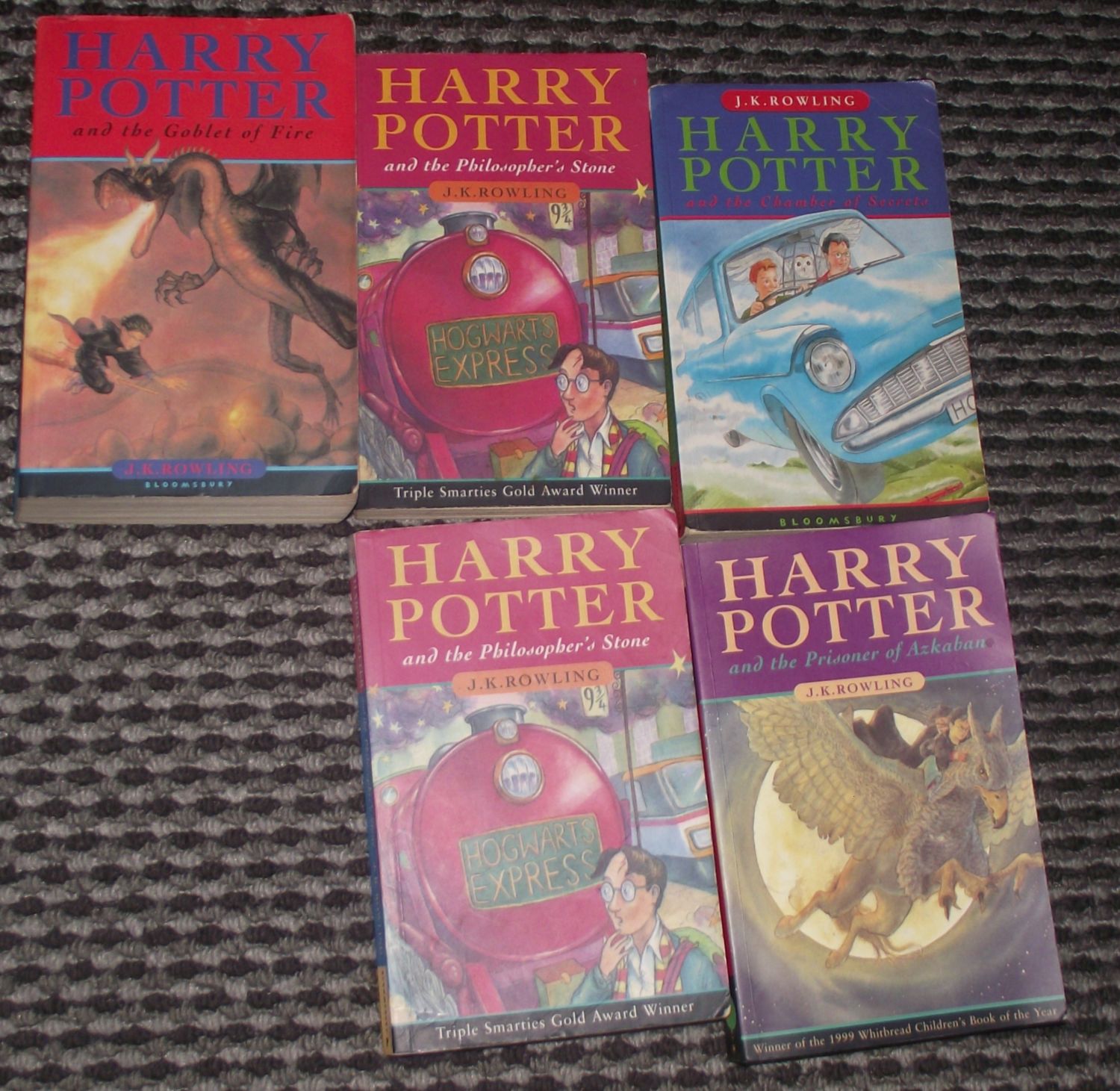 Harry Potter Goblet of Fire paper back + 2x The philosophers stone paperback +Chamber of secrets paperback + Prisoner of Askaban paperback (5)