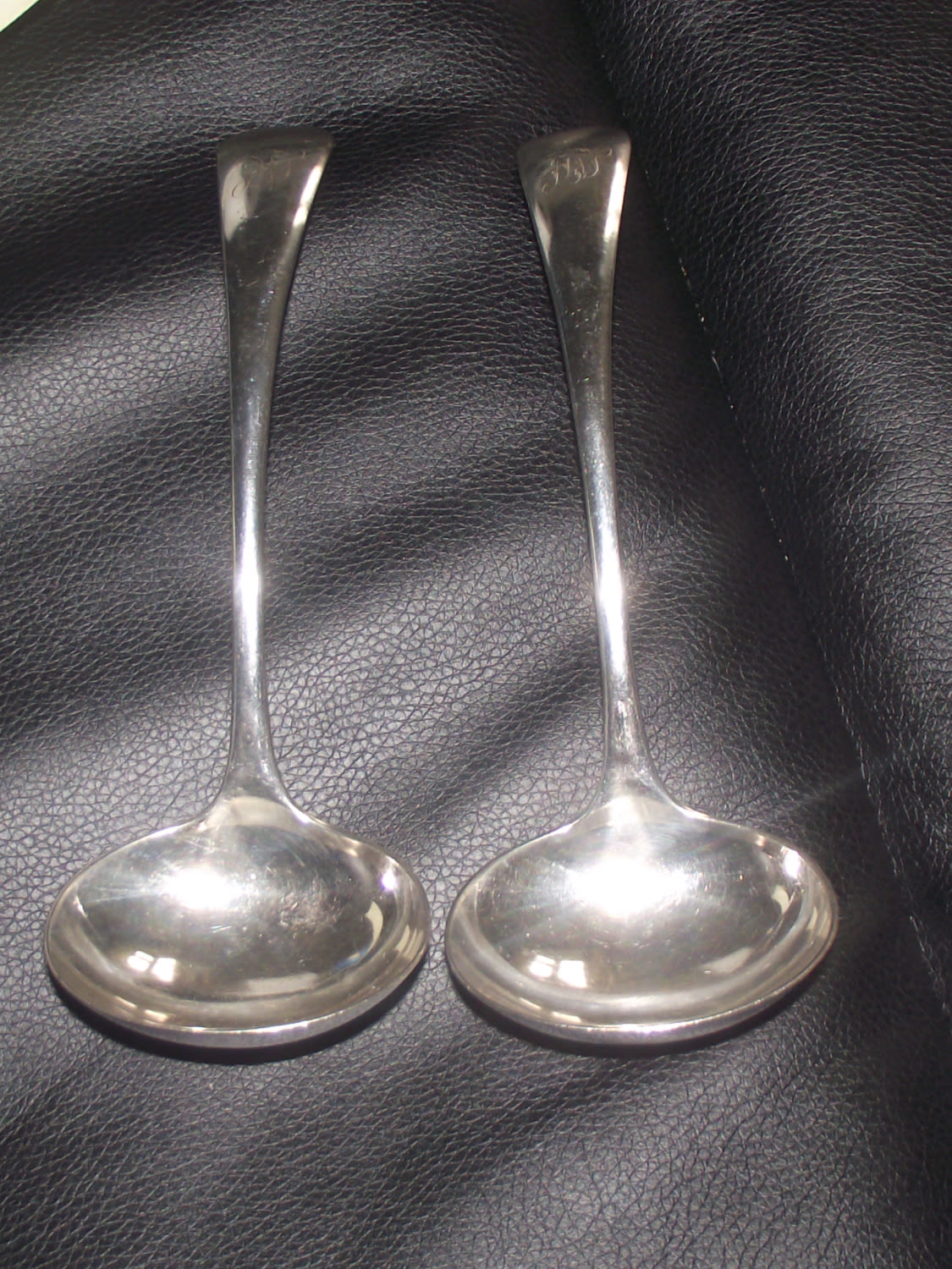 Pair of 1860s Roberts & belk silver plated 7″ ladles both monagramed handles