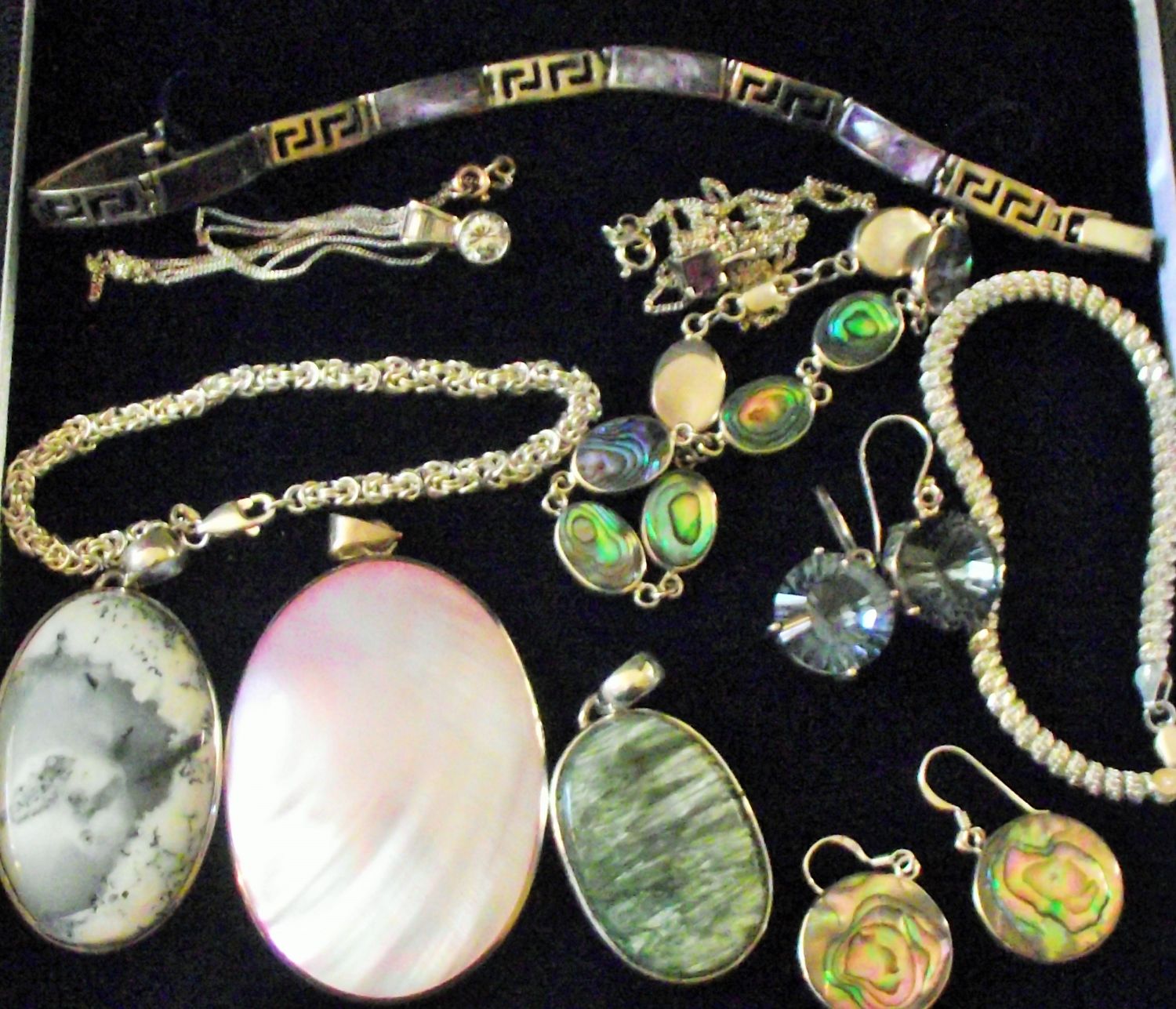Selection of assorted jewellery items , necklace & pendants ,earrings, pendants bracelets all marked 925
