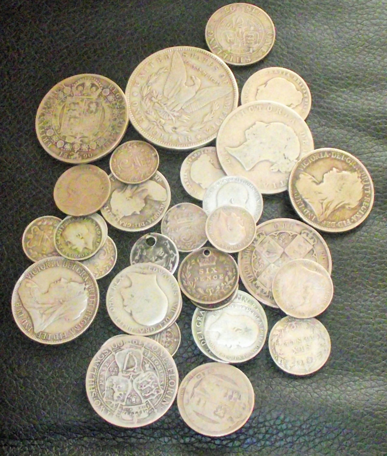 Collection of old British silver coins sixpences , three pences ,florins , shillings +silver american morgan dollar 1883 164g approx