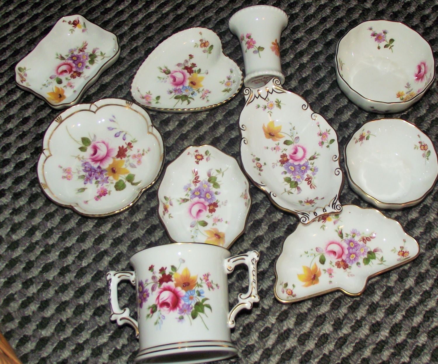 Collection of 10 pieces Royal Crown Derby posy pattern