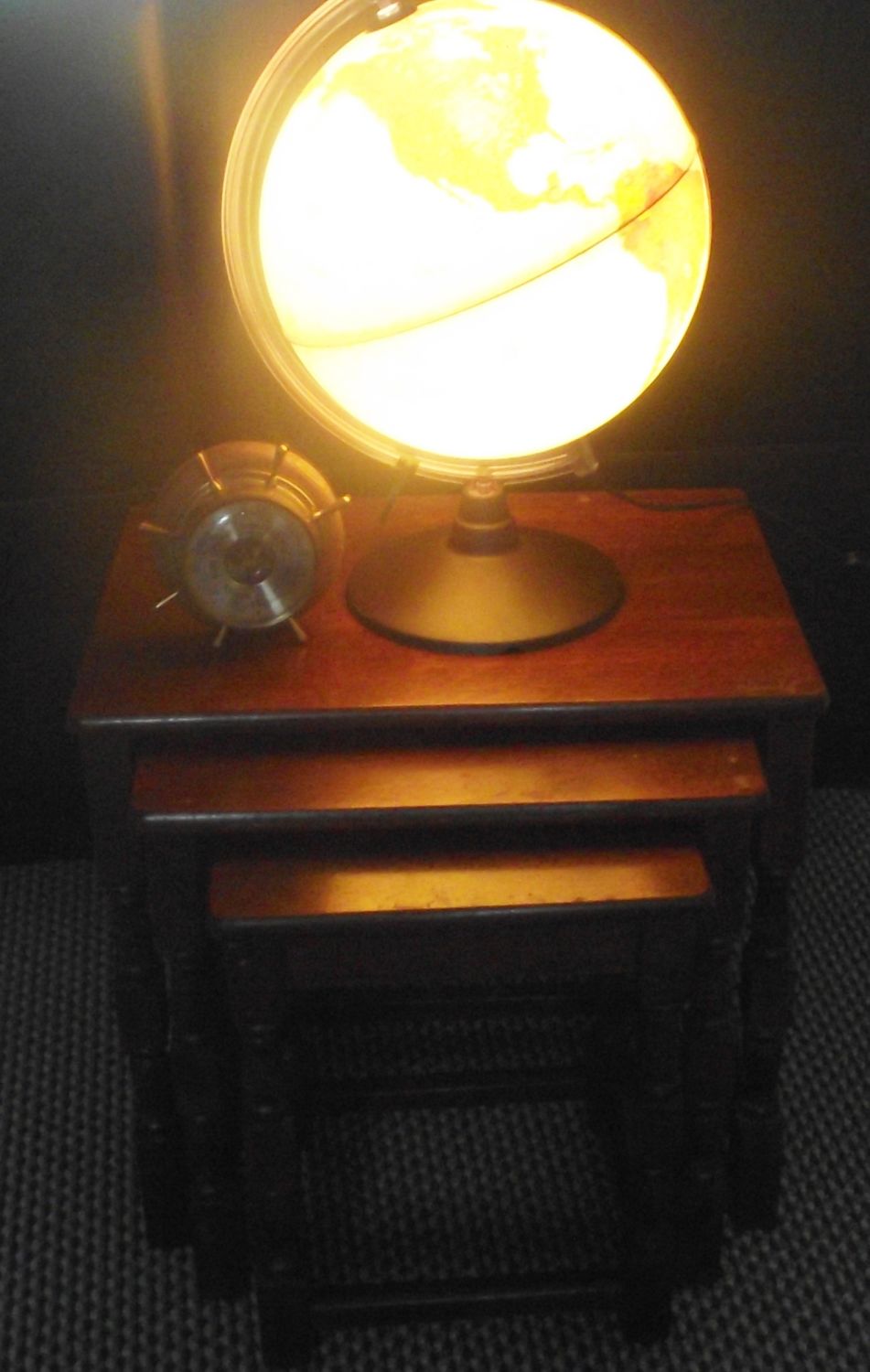 Good Nest of 3 tables , light up world globe , small circular wall berometer