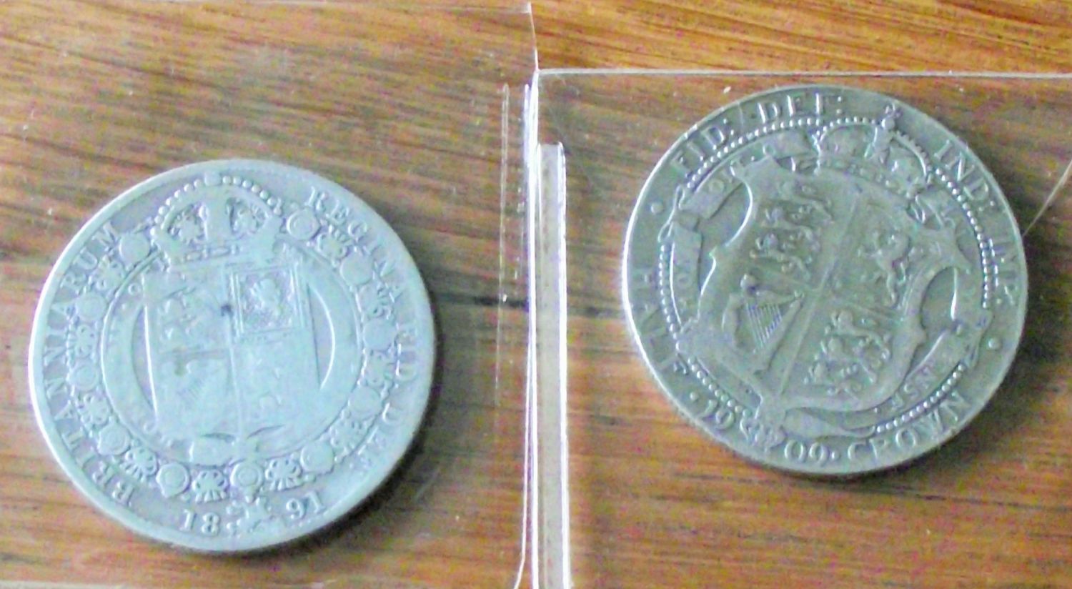 1891 Queen Victoria Silver Crown + 1909 edward V11 Silver half crown Coin ( both good condition )