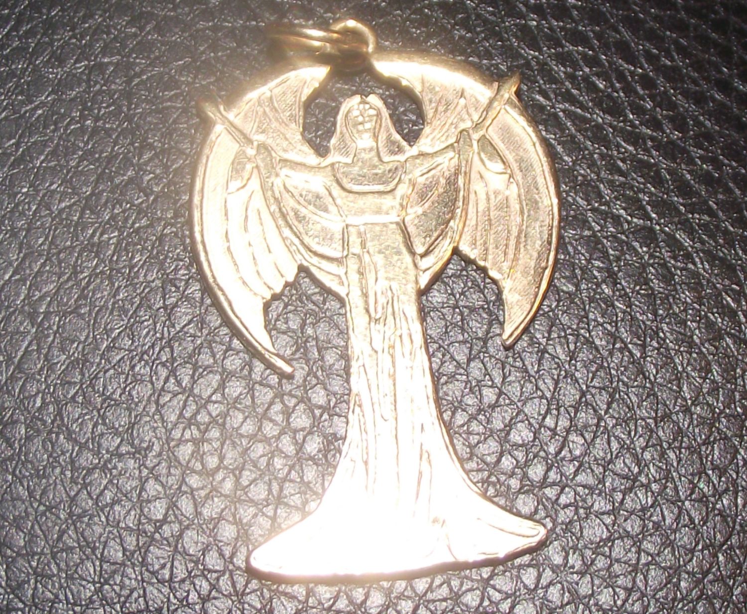 fully hallmarked 9ct gold pendant in the form of an angel 35x25cm 7.4g approx