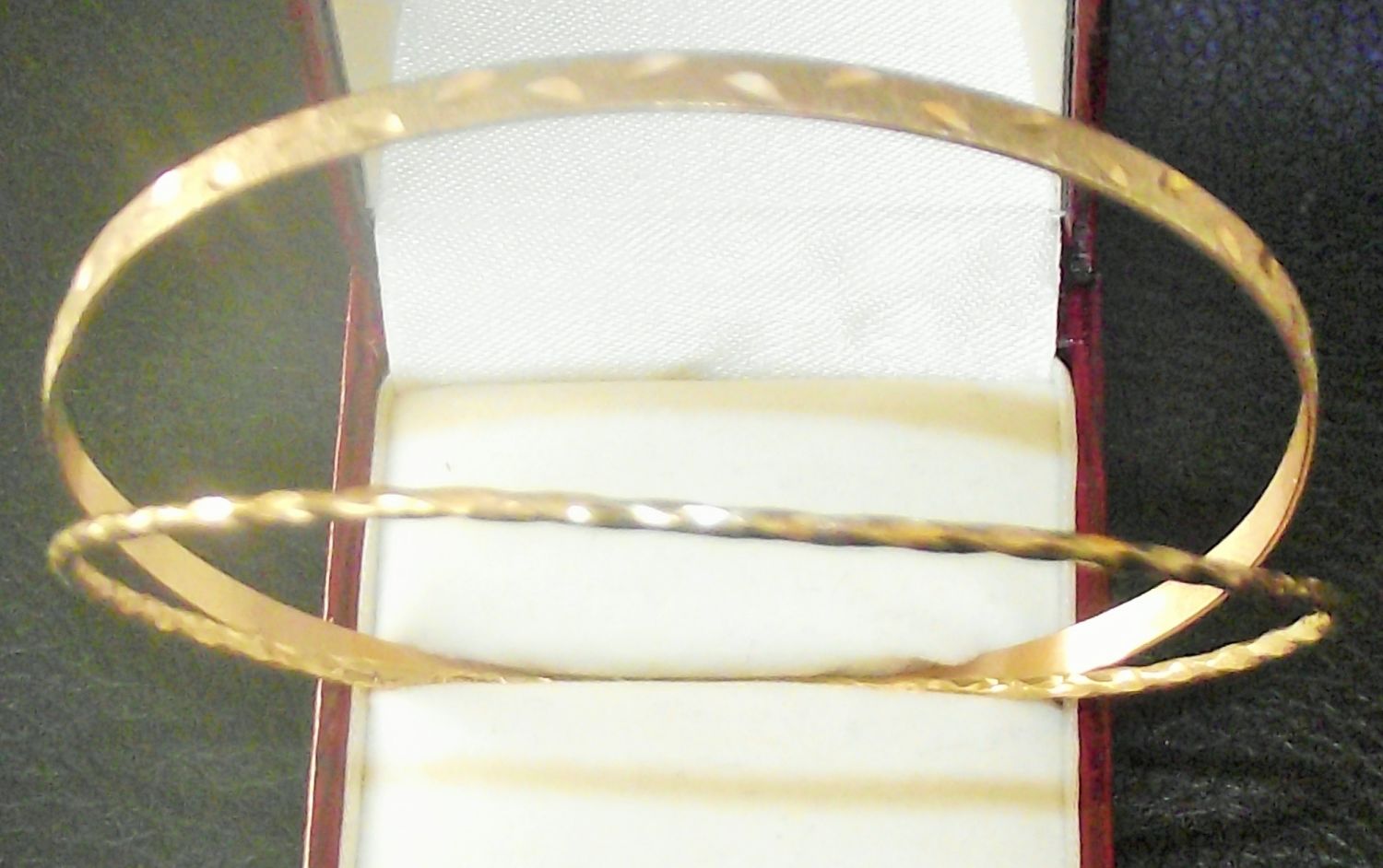 2x ladies 9ct gold bangles 7cm diameter 6g approx