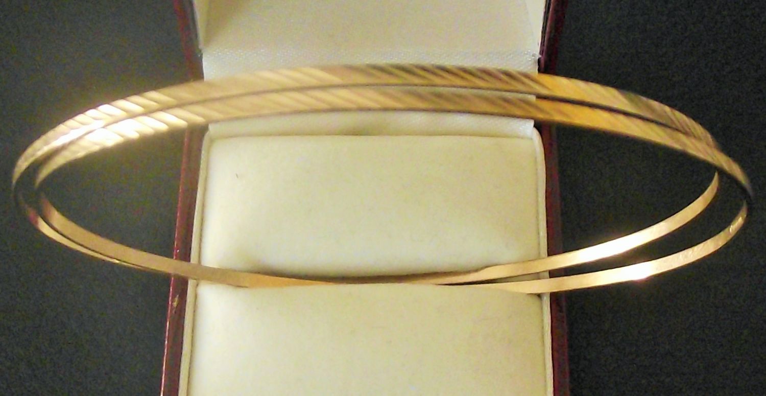 2x matching ladies 9ct gold bangles 68mm diameter 4.4g approx