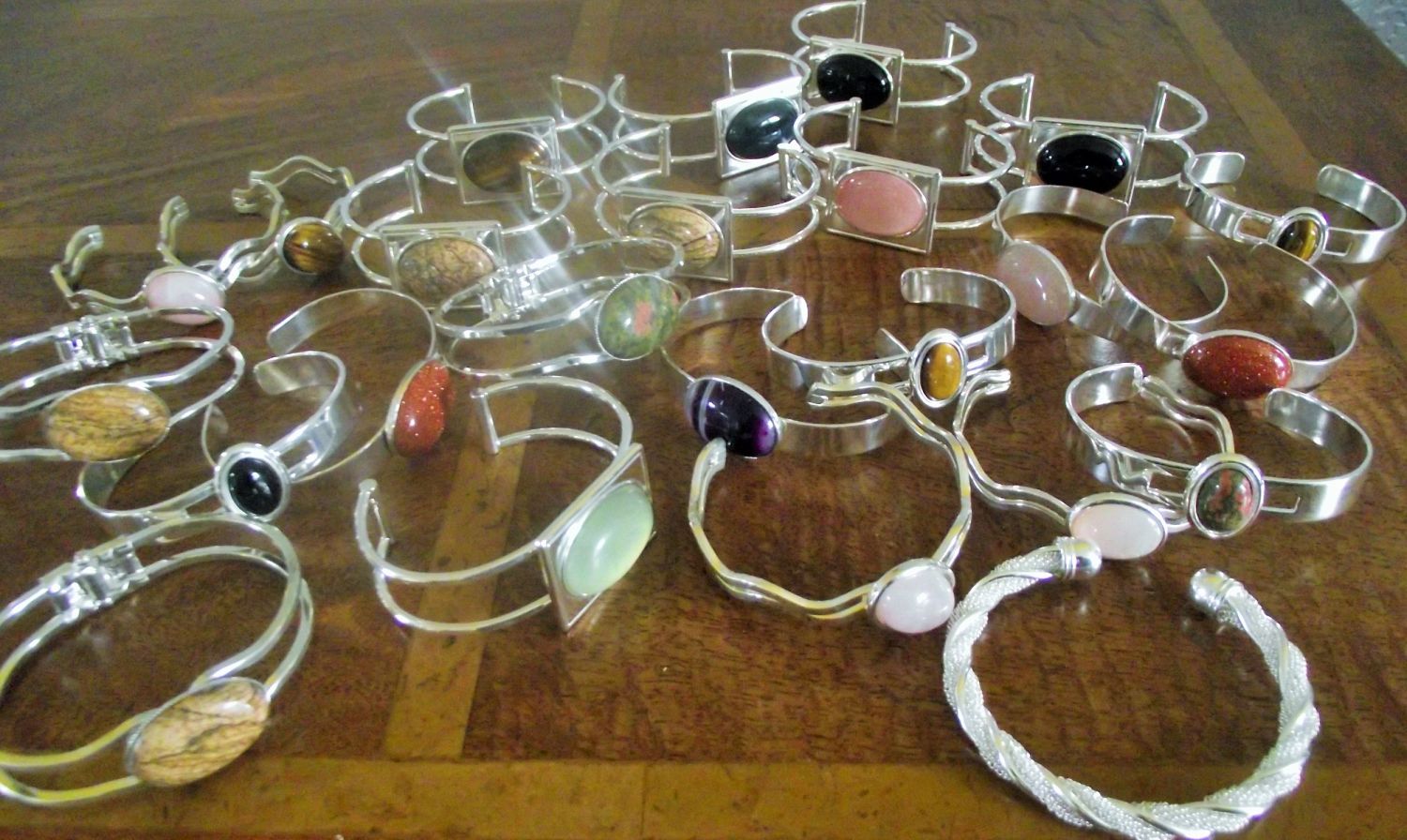 Selection of 23 good quality plated solid bangles set with various stones (23)