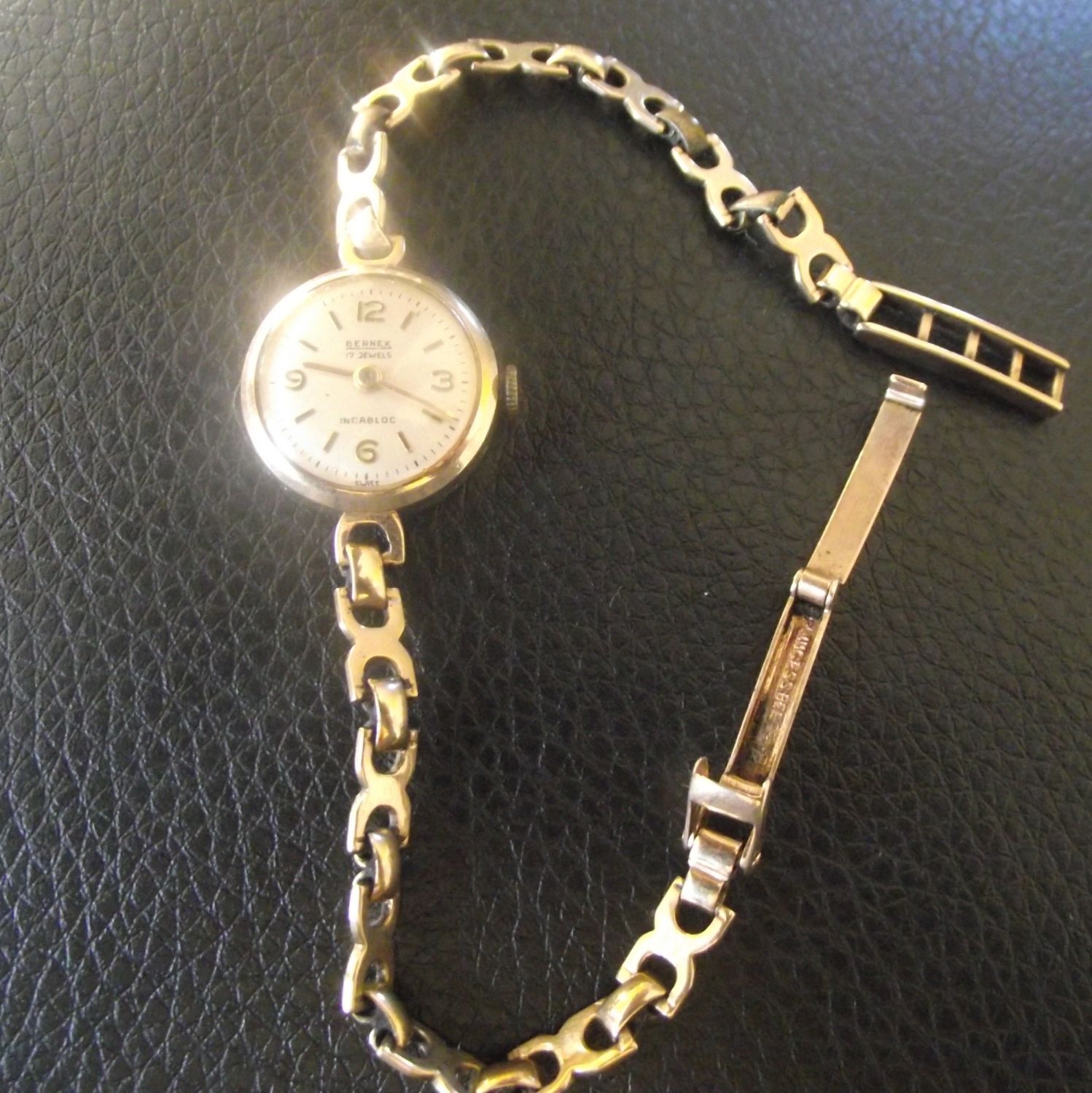 9ct gold ladies Bernex 17 jewel wrist watch 8G APPROX WITH MOVEMENT REMOVED ( There are several small solder link joints on watch strap)