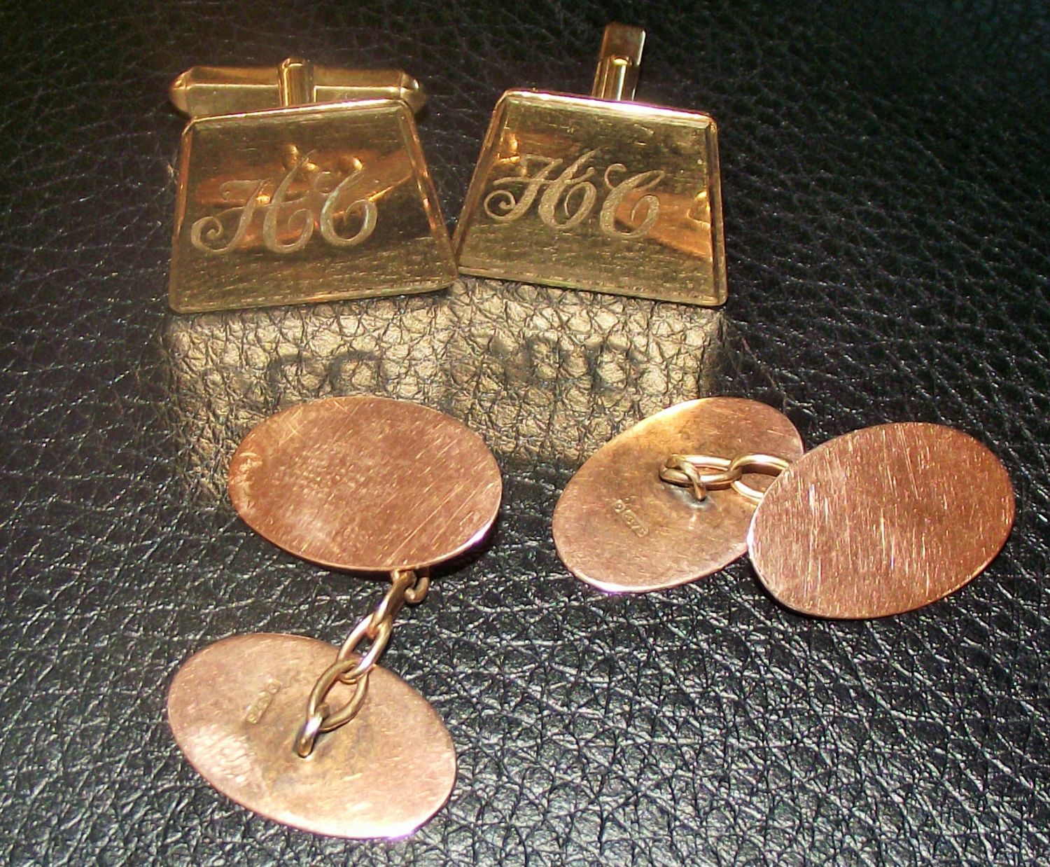 2x pairs of gents 9ct gold cufflinks 10.8g approx