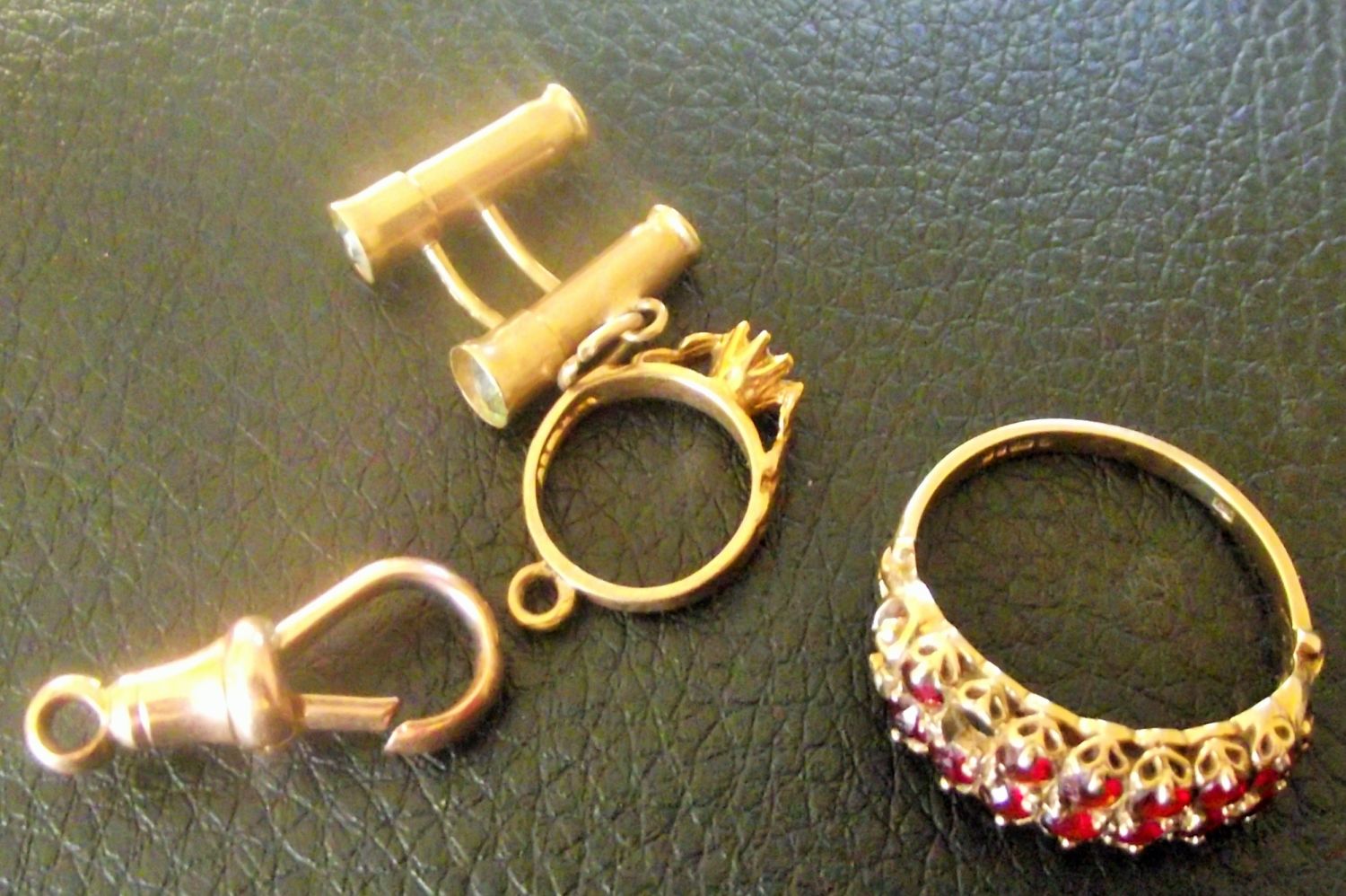 small collection of 9ct scrap gold including ring set with garnets one stone missing 5.8g approx