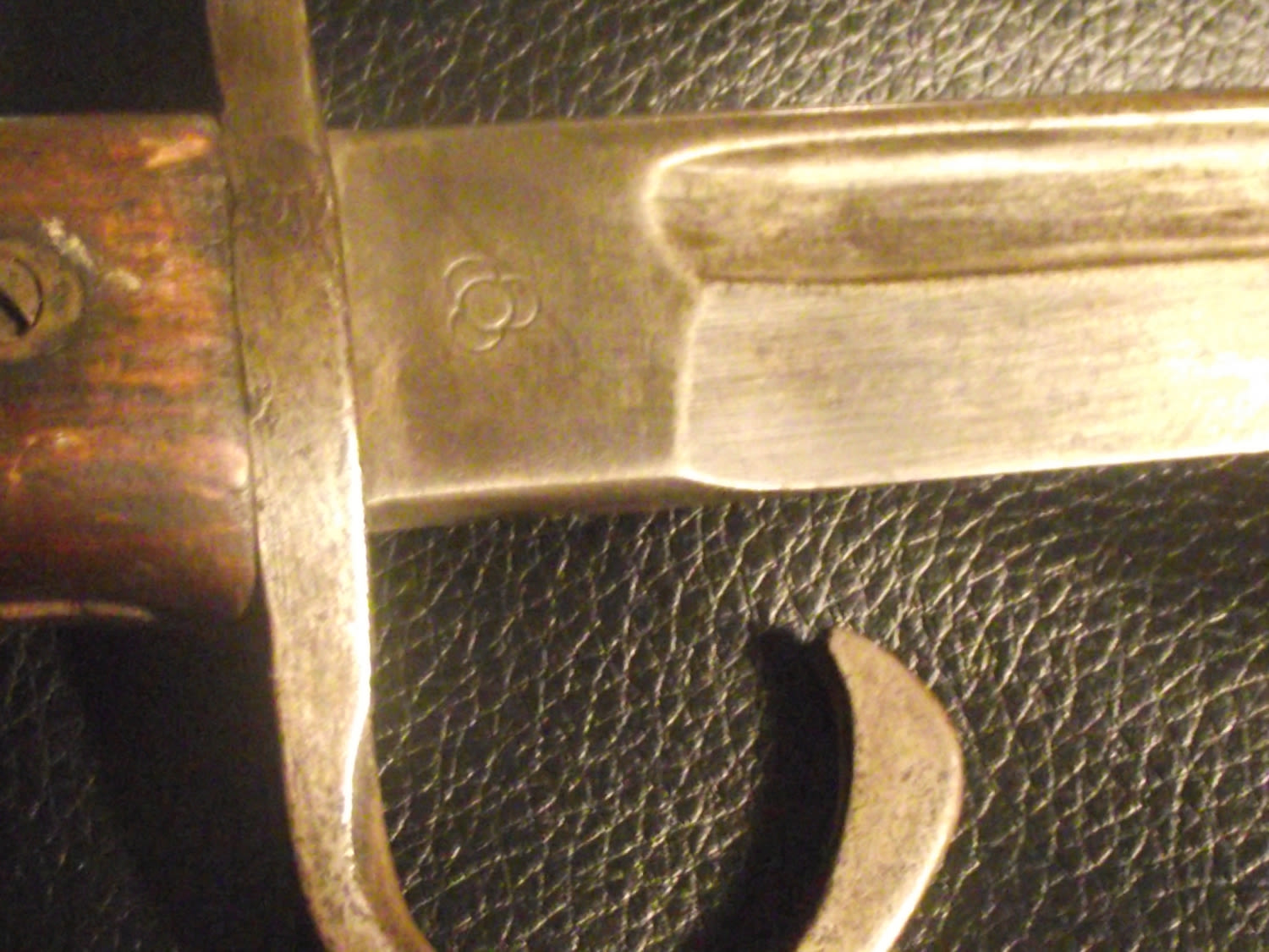 Rare WW11 Original Japanese Early Type 30 Hooked Quillon Bayonet by Kokura Arsenal – Arisaka Type 30, 38, 99 Rifles No 70125, kokura mark to blade