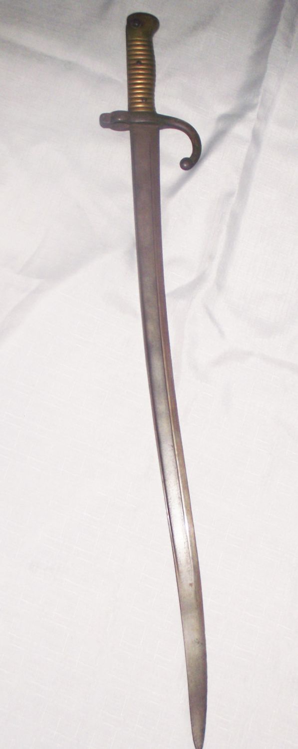 French Model 1866 “Chassepot”Yataghan Sword Bayonet FH 39030 marked on guard, blade 57cm overall length 27”