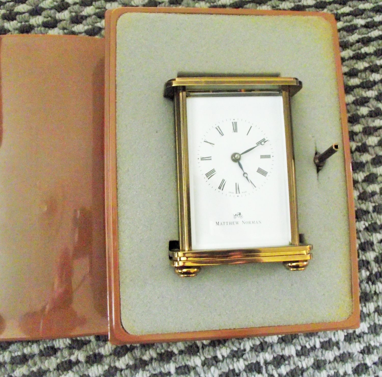 Vintage Mathew Norman brass cased carriage clock (with original packing and key ,Working )