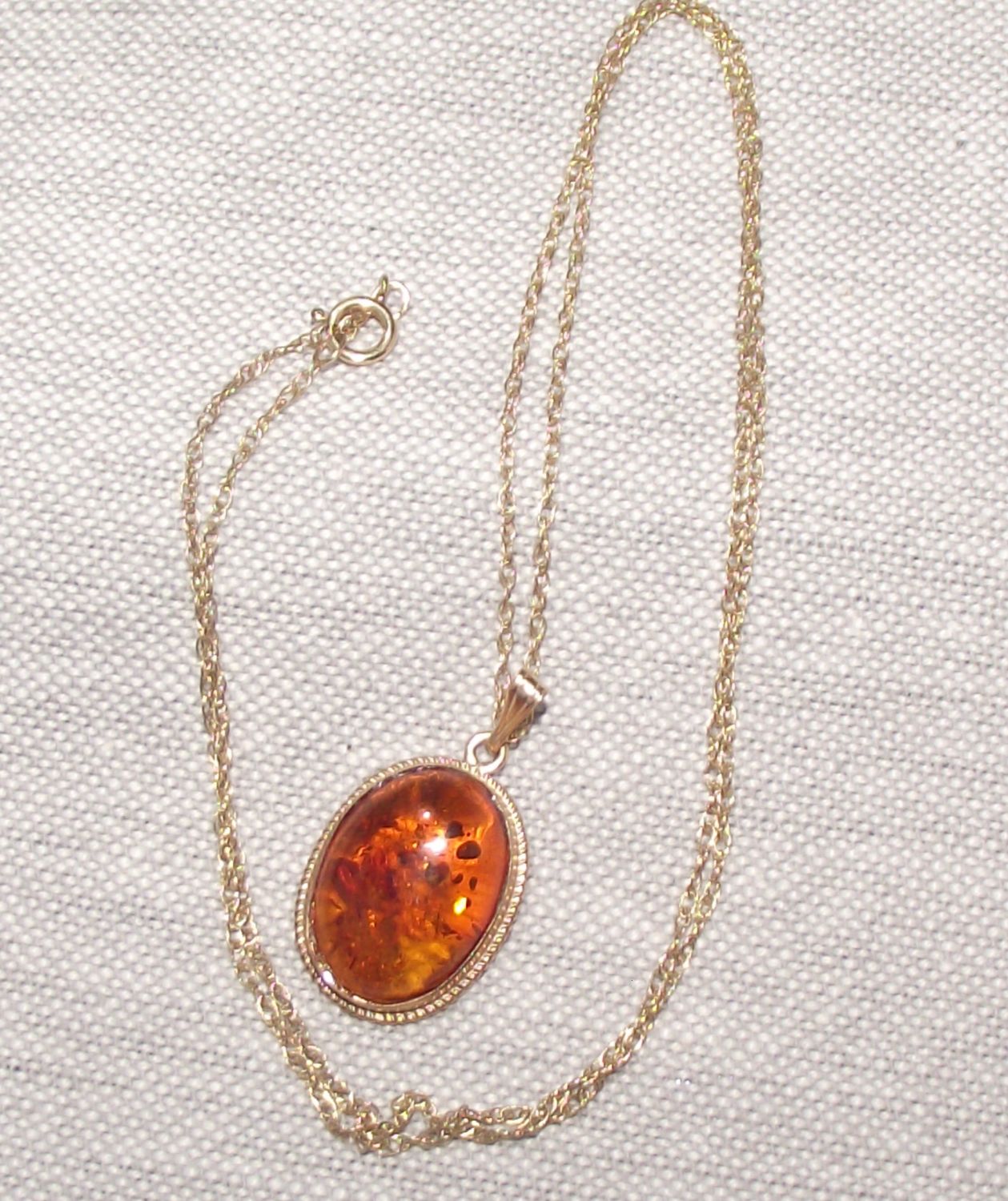 9ct gold chain and pendant with central amber style stone 2.2g approx