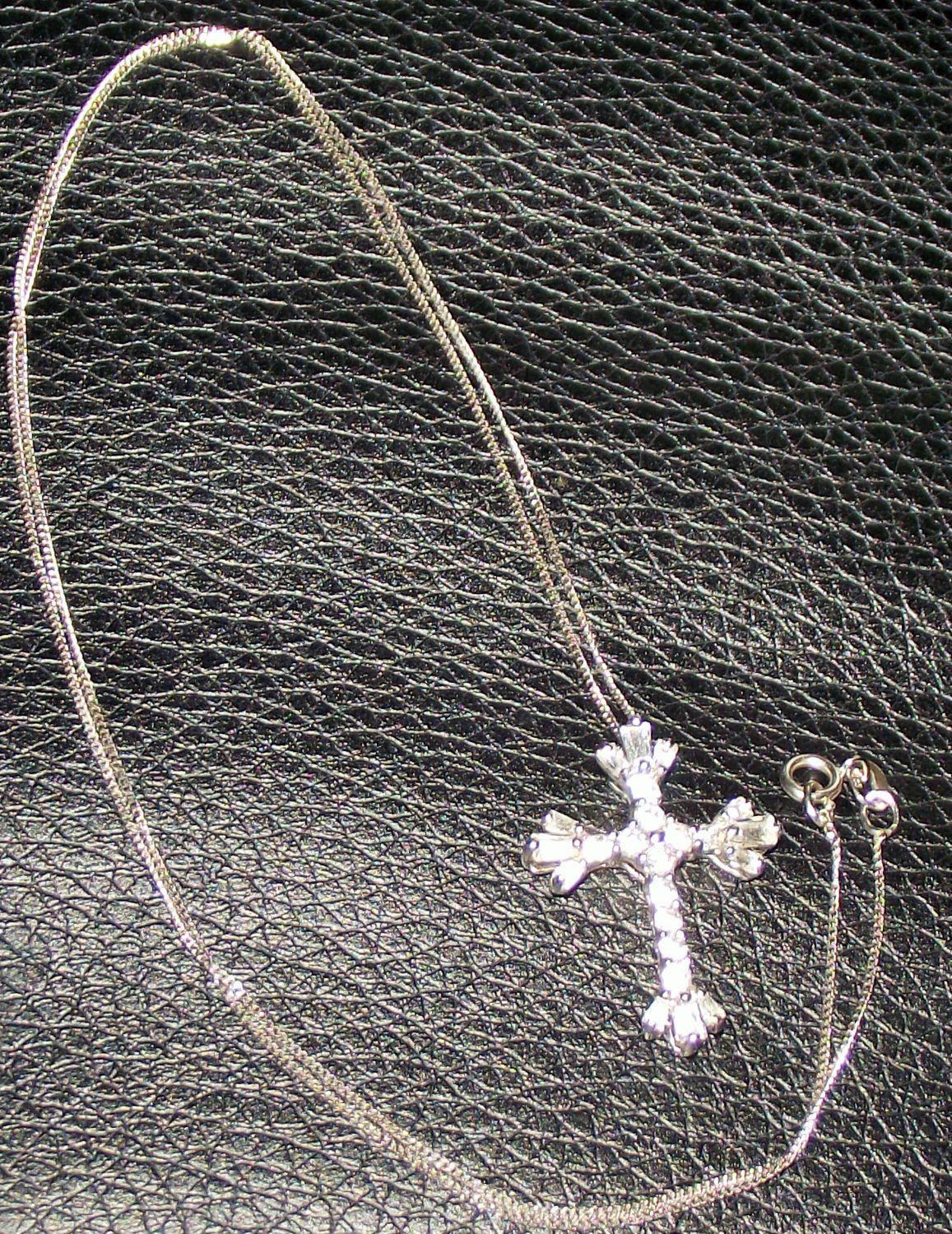 14k white gold CZ set cross marked 14k suspended on 14ct gold chain marked 585 16″ -2.1g approx approx