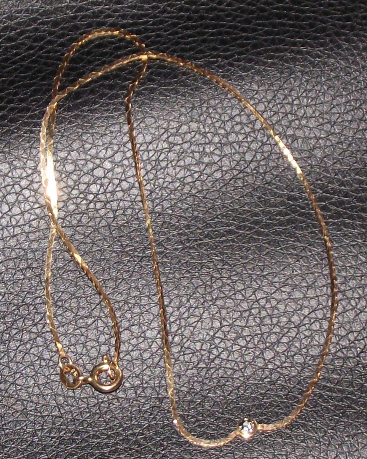 9ct gold ladies 7″ neck chain set with central illusion set diamond 2.6g approx