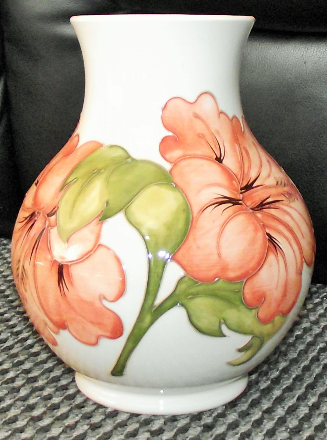 Large 25cm tall cream ground Moorcroft vase circa 1987 William John Moorcroft initials Moorcroft