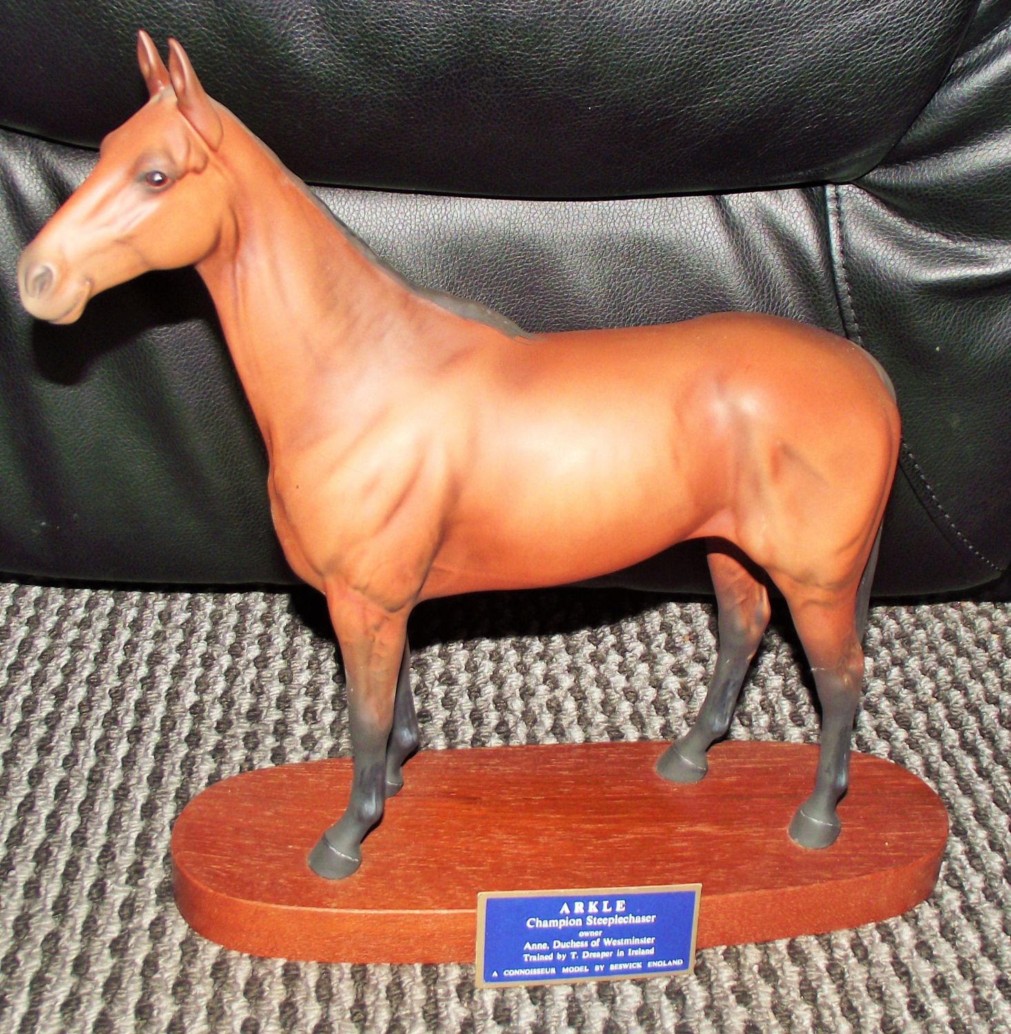 Beswick matt model of Arkle racehorse Beswick stamp underside on wooden plinth