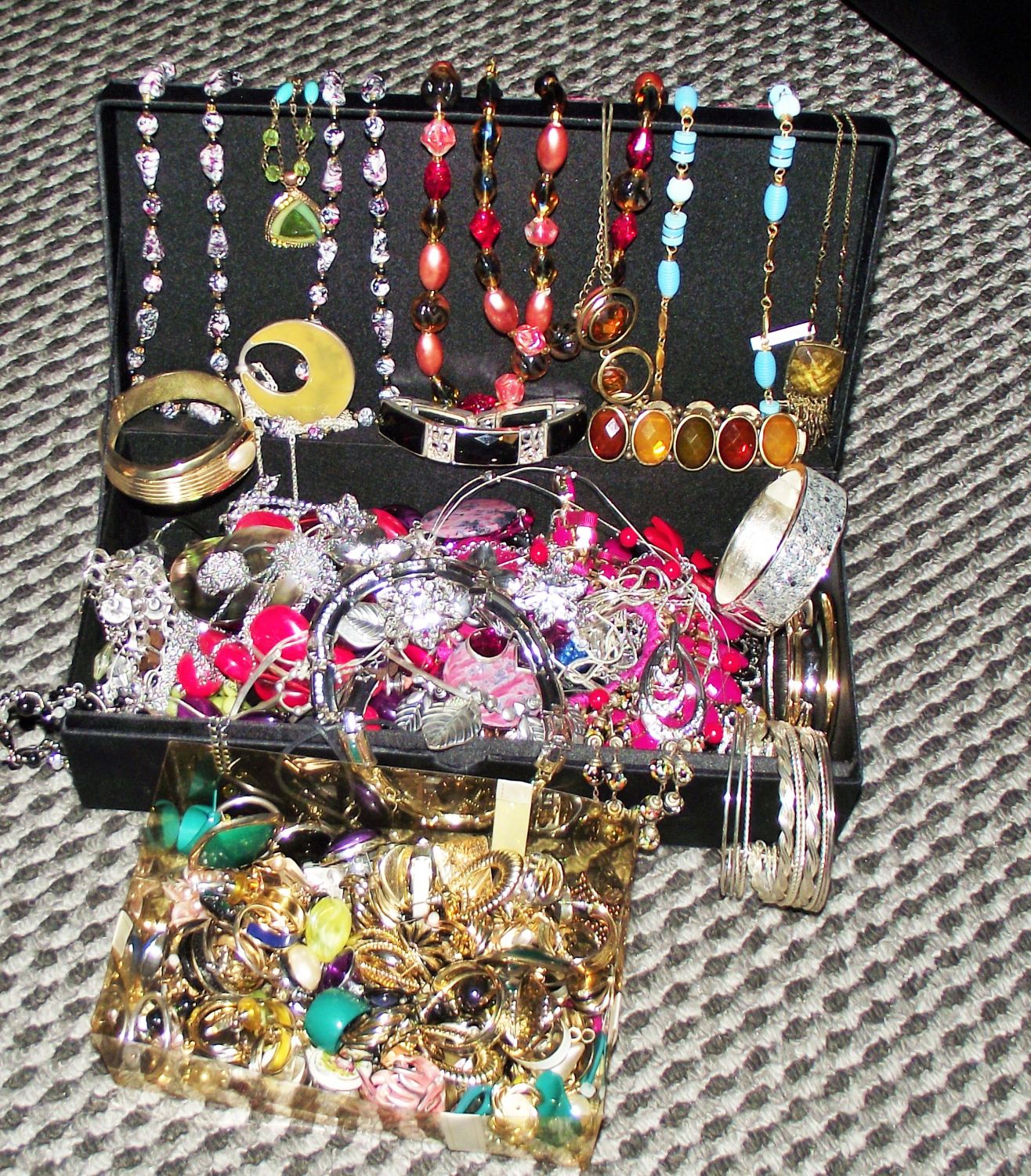 Nice large selection of assorted costume jewellery + large box of mixed earrings