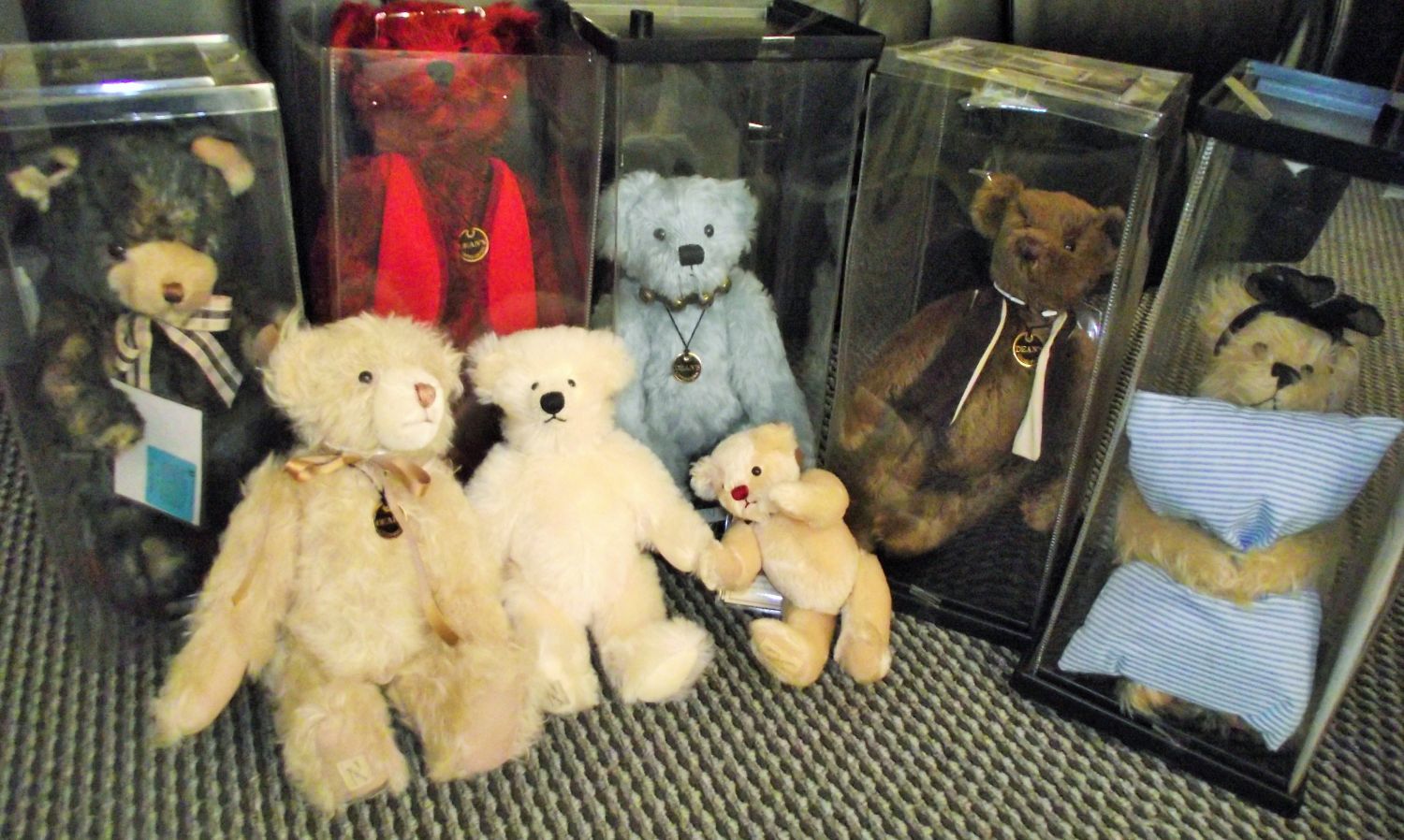 3x Deans collectors teddy bears + 2 Mary Meyer collection teddy bears in boxes with certificates + 3 smaller Deans with certificates ,no boxes