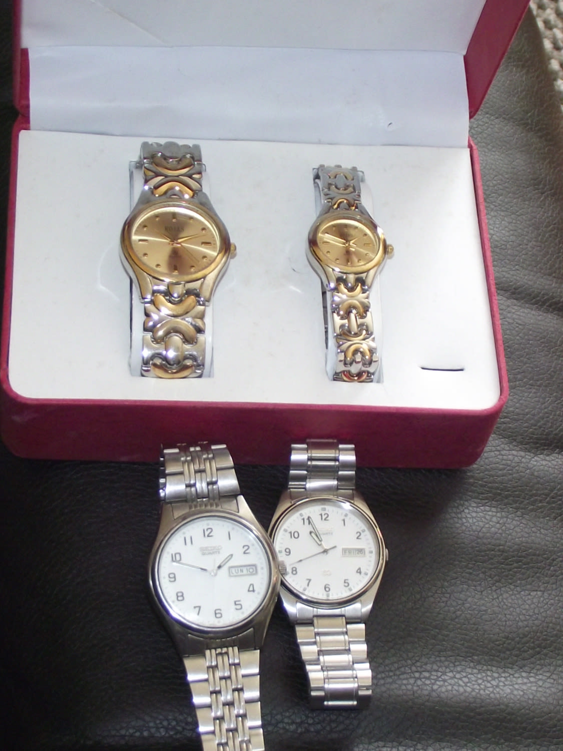 2x Seiko quartz watches + ladies & gents boxed Rojas dress watches