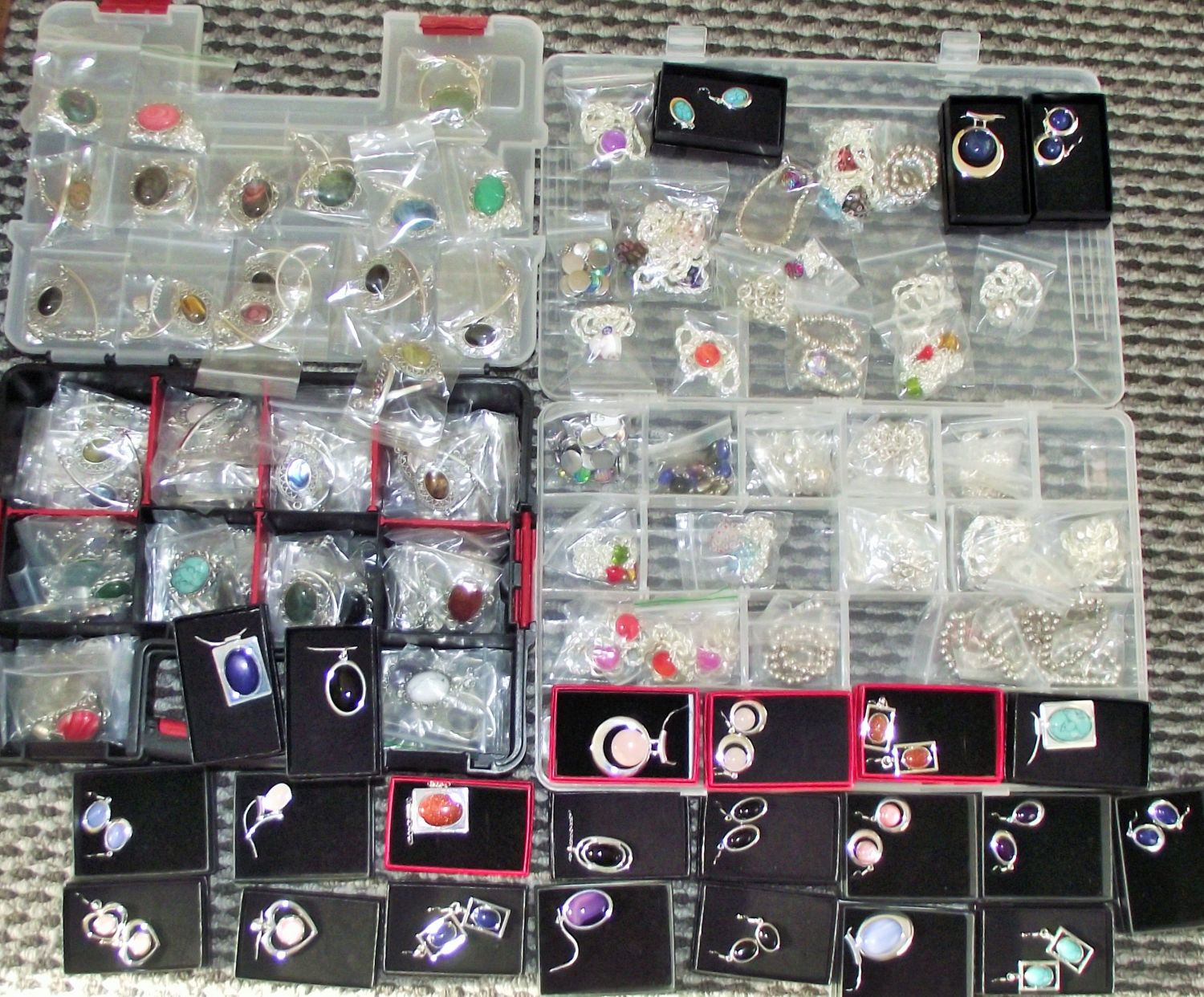 Large collection of Silver plated jewellery, pendants ,bangles ,neckchains some matching sets 150 + pieces
