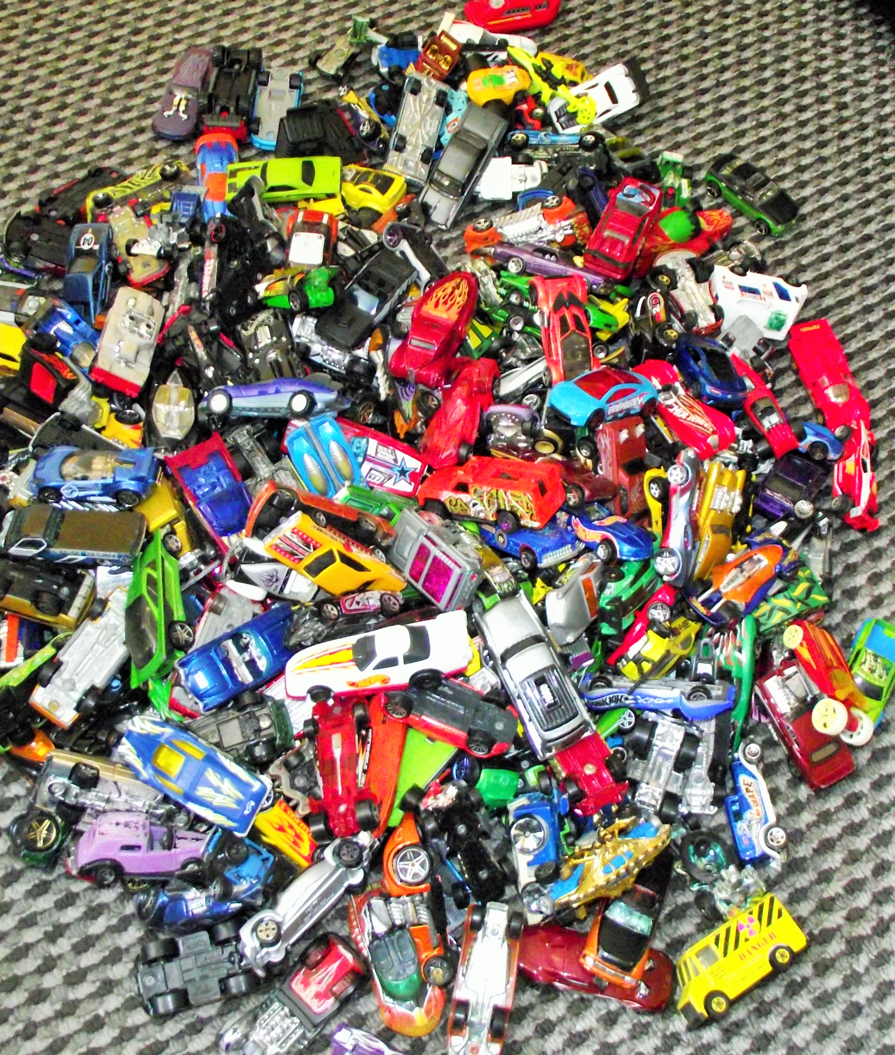 Large box of 270 + mainly hotwheels miniature cars ,bikes etc