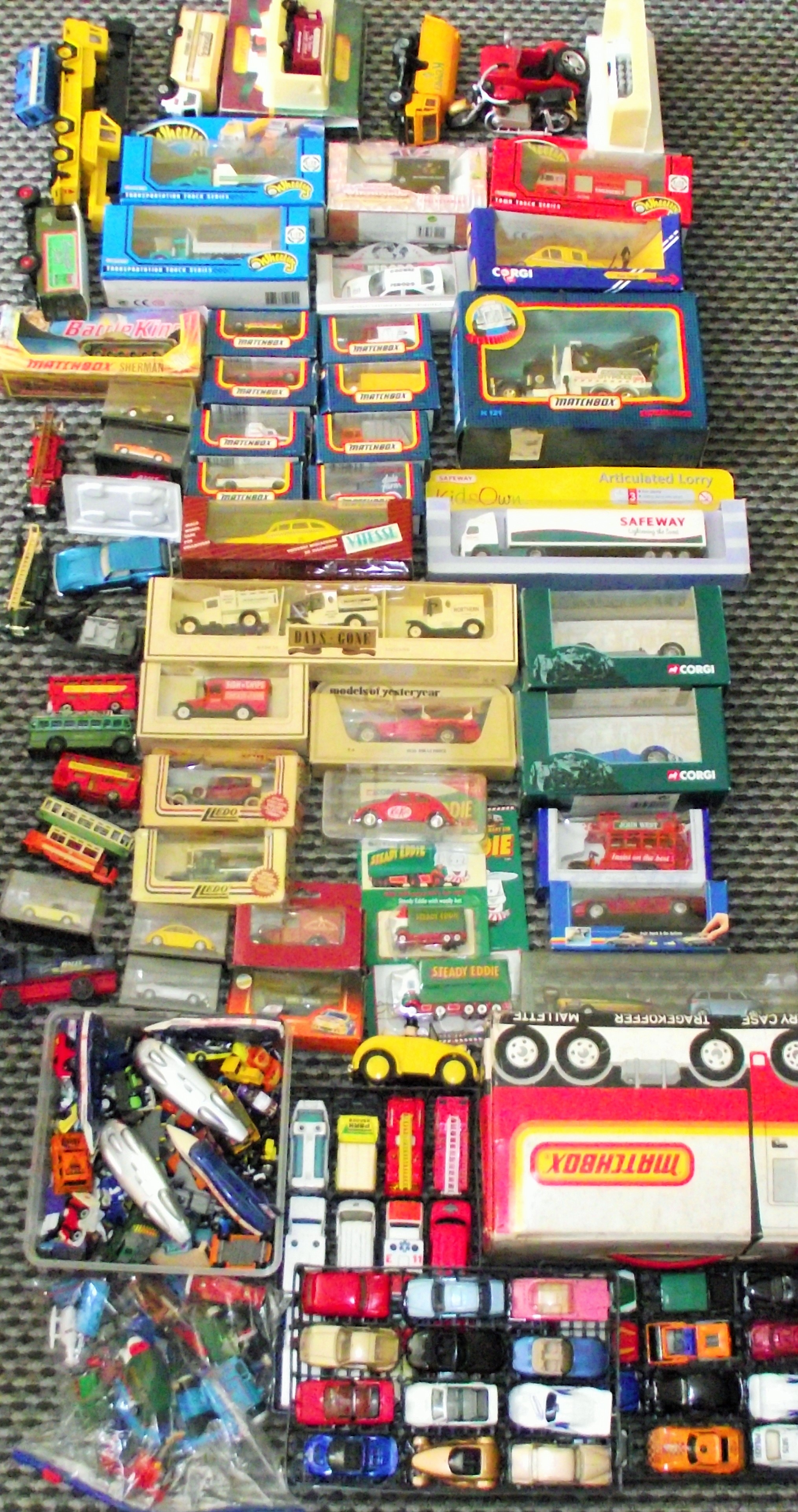 Large collection of assorted die cast models , cars ,vans , buses , trams etc
