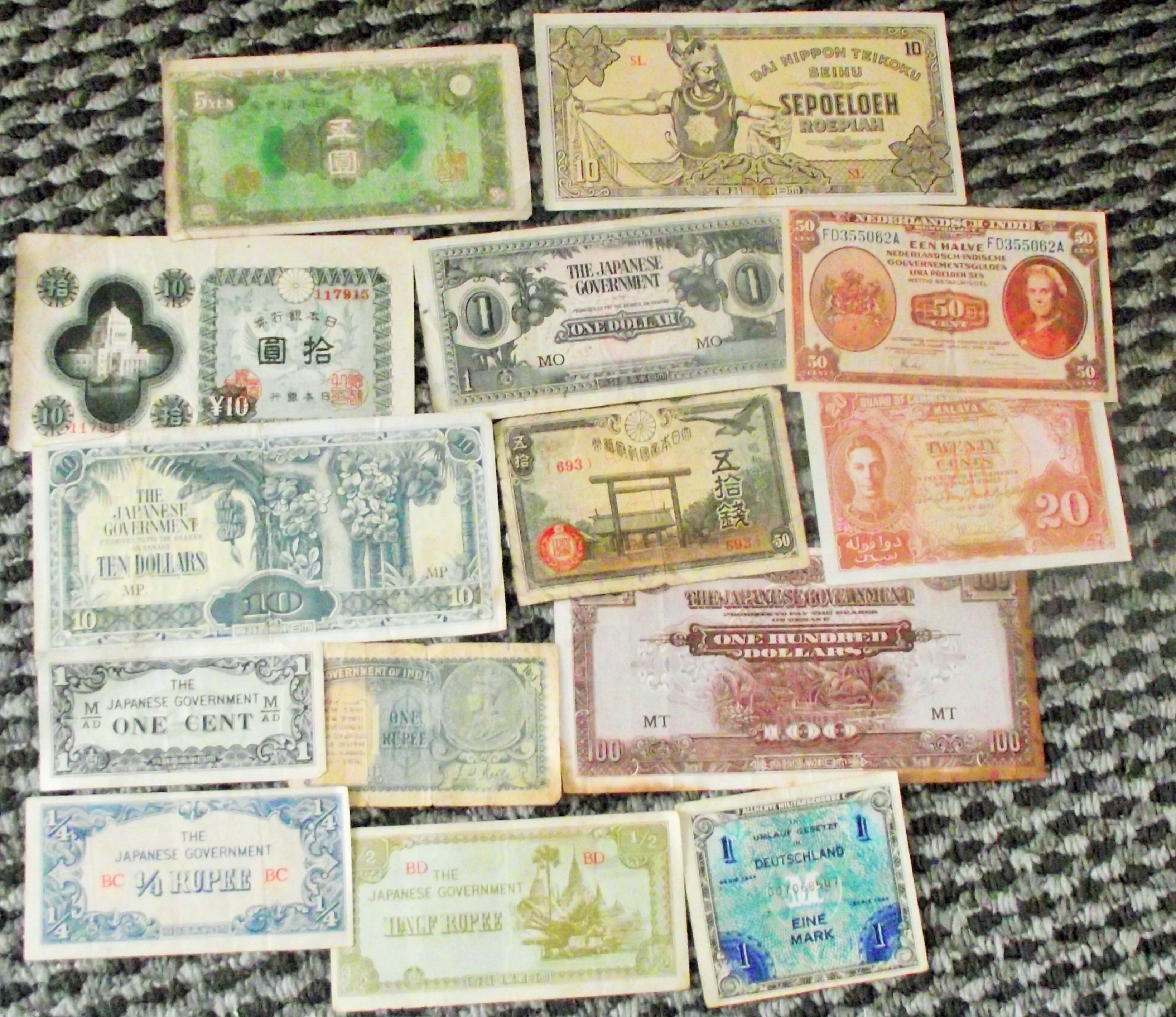Selection of old banknotes covering in and around mid 1940s