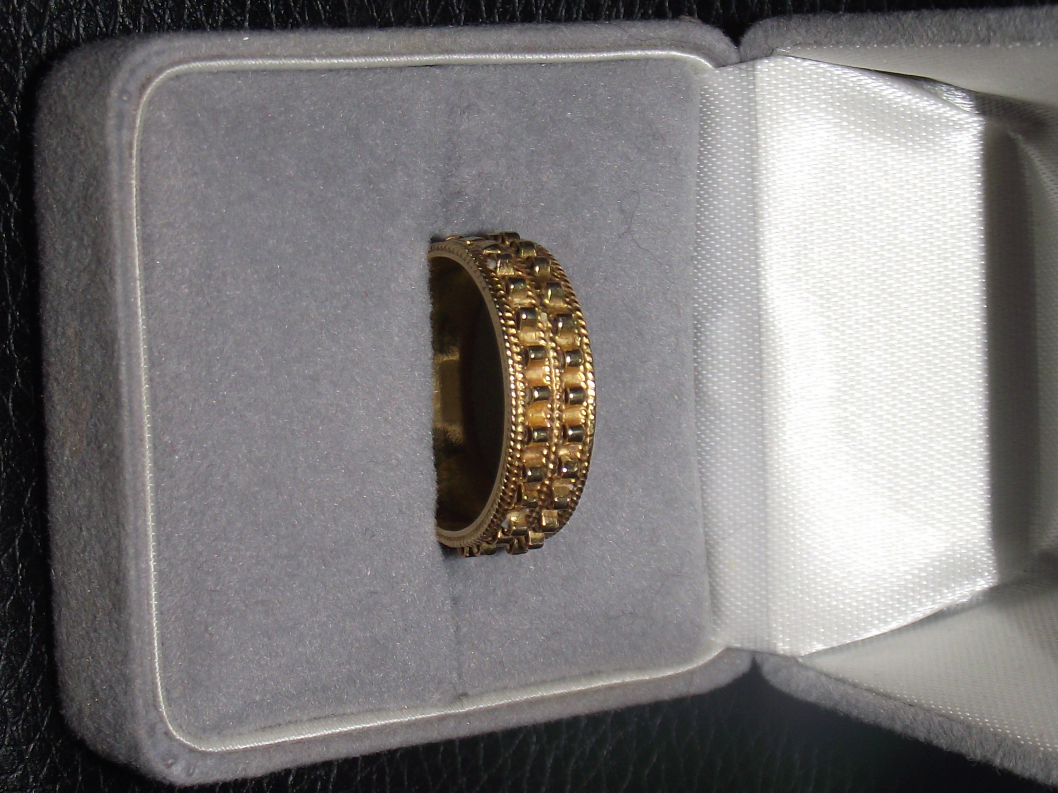 18ct gents ring 5.7g approx 2 rows of rased lines marked with arabic hallmarks size P