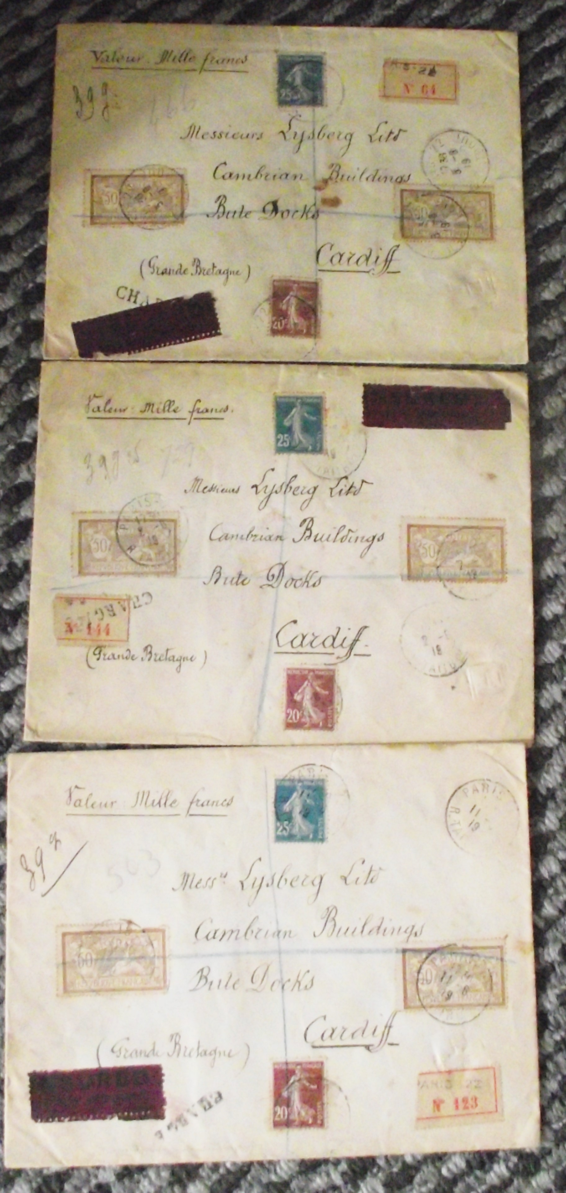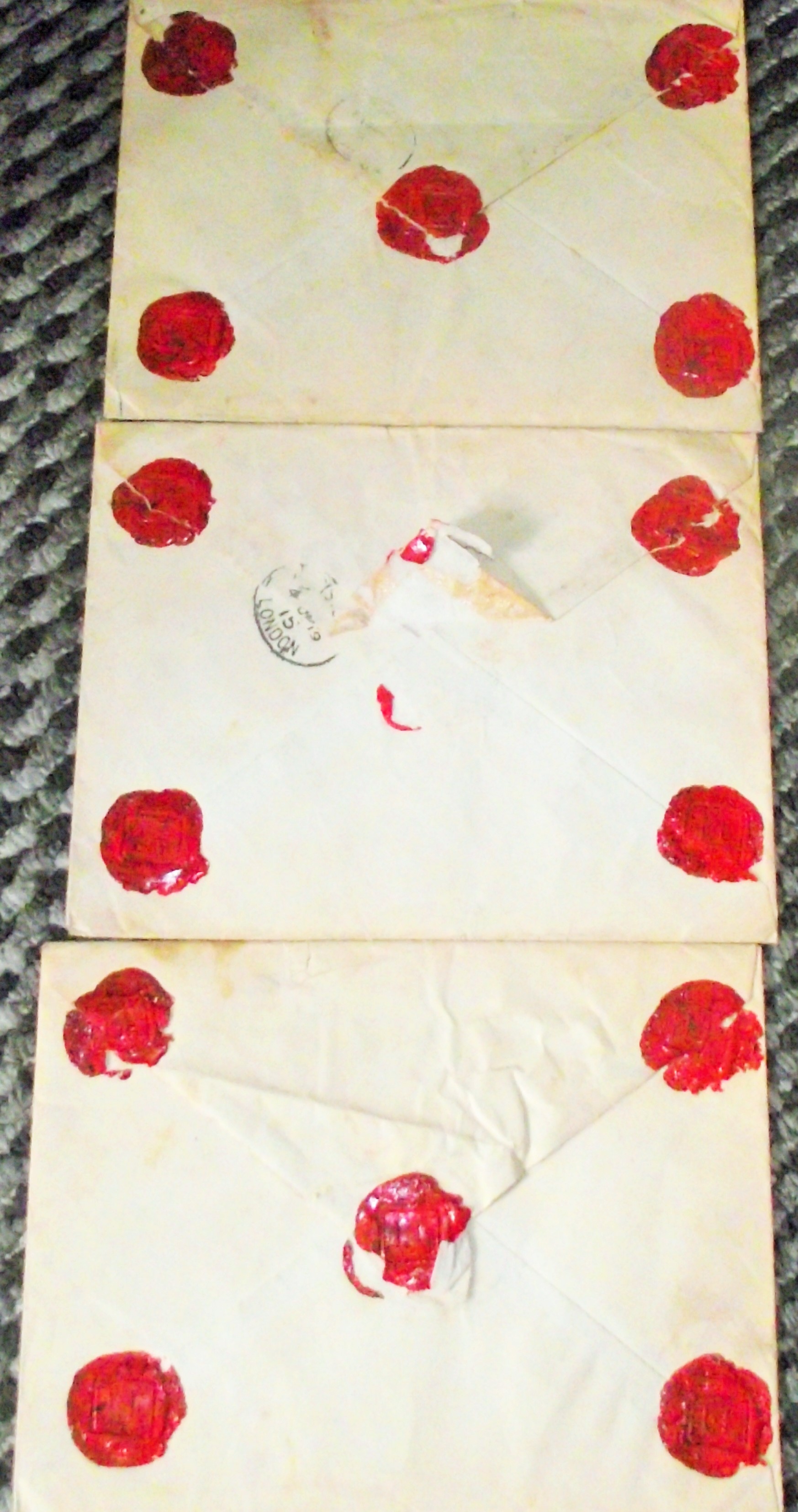 3x Rare surviving wax sealed envelopes ( Seal stamp LL) from around 1915 ( one dated on reverse