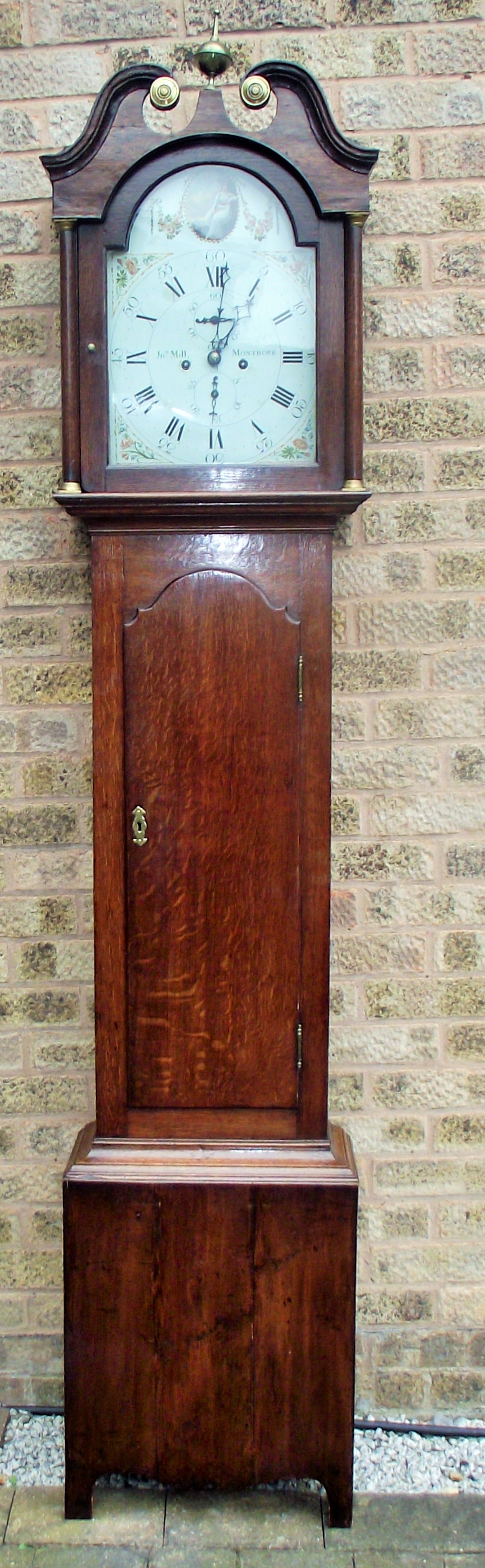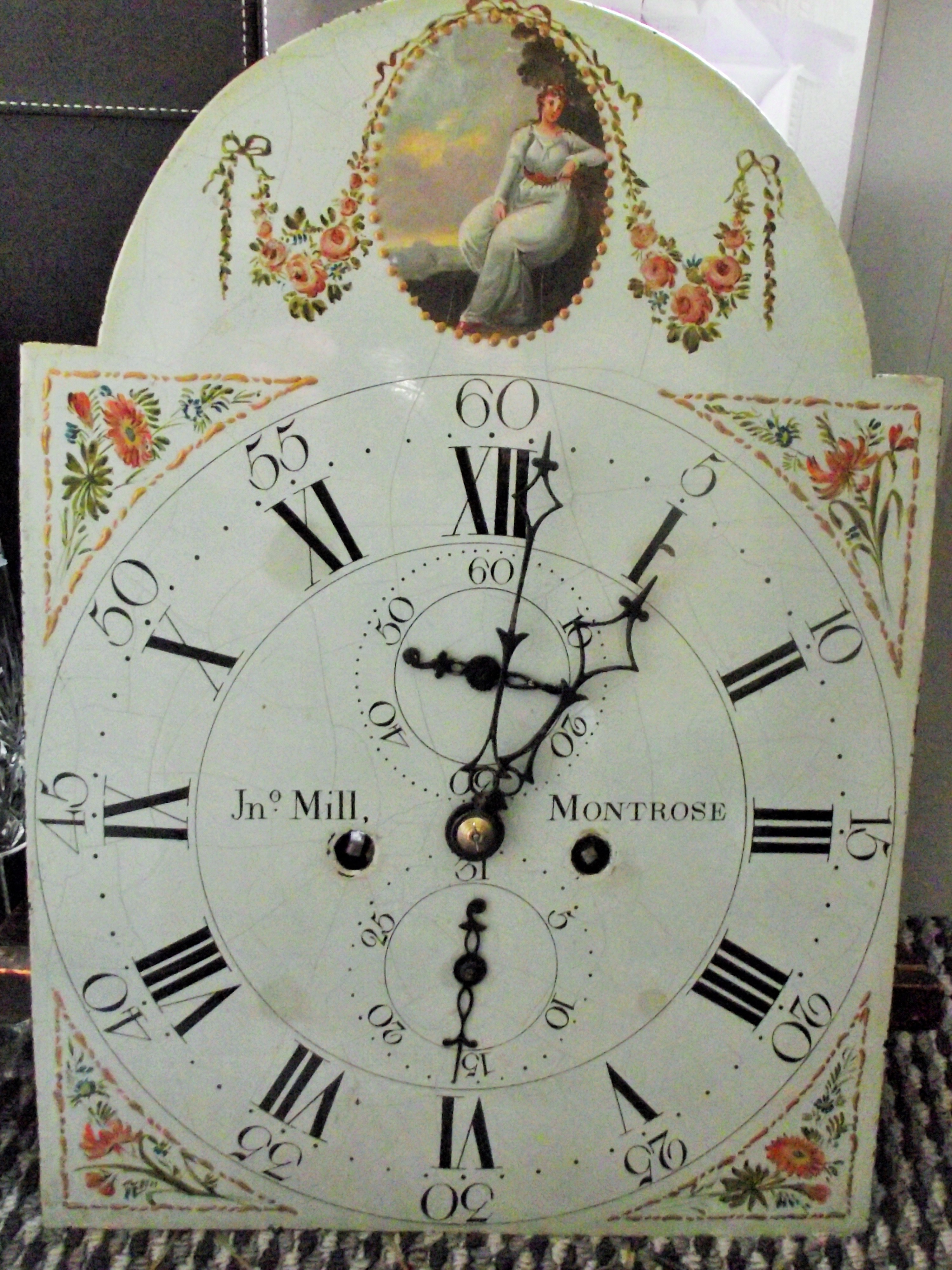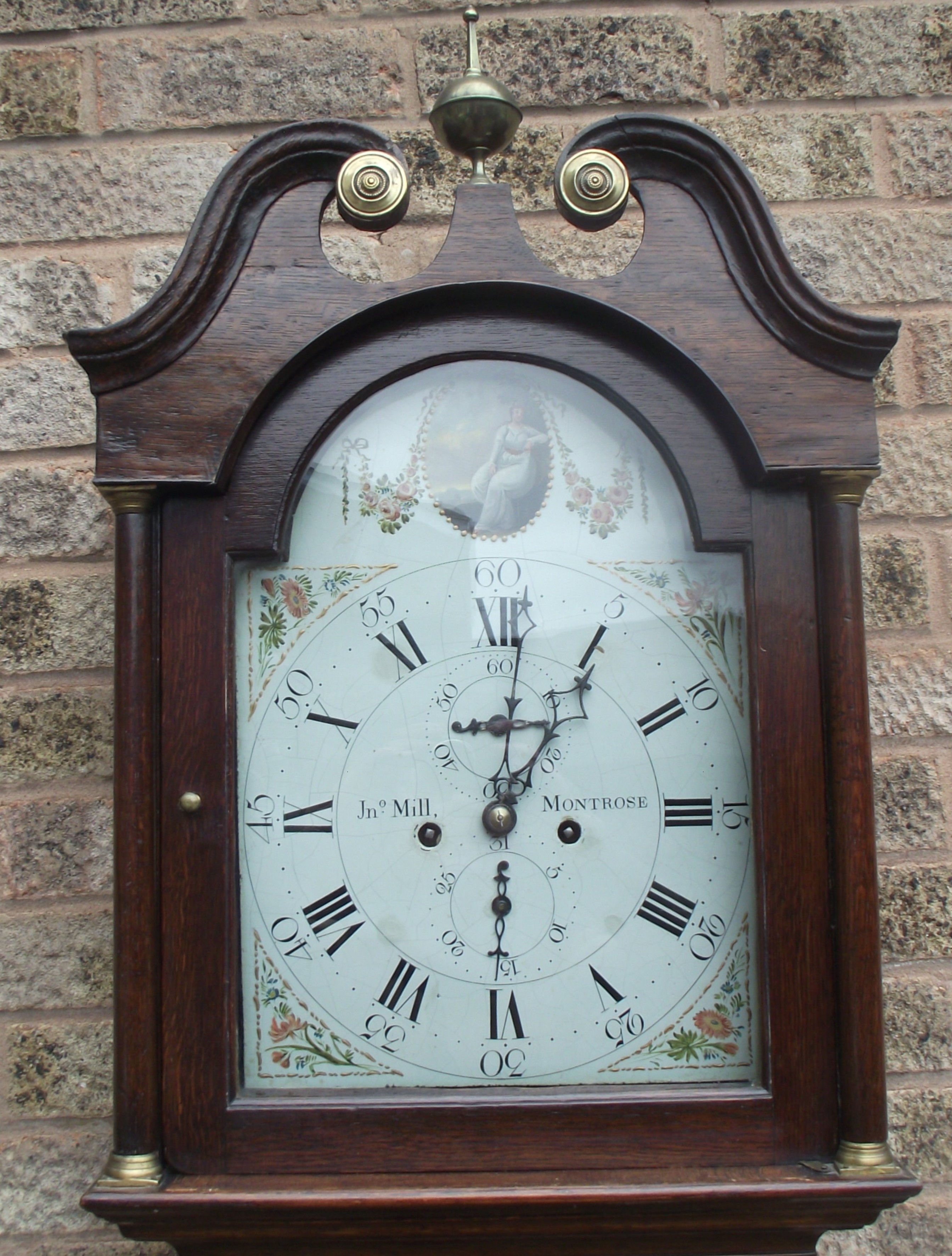 A fine late 18thc Scottish long case clock Jon Mills Montrose with painted dial subsidary seconds with key & weights etc ( seen working )