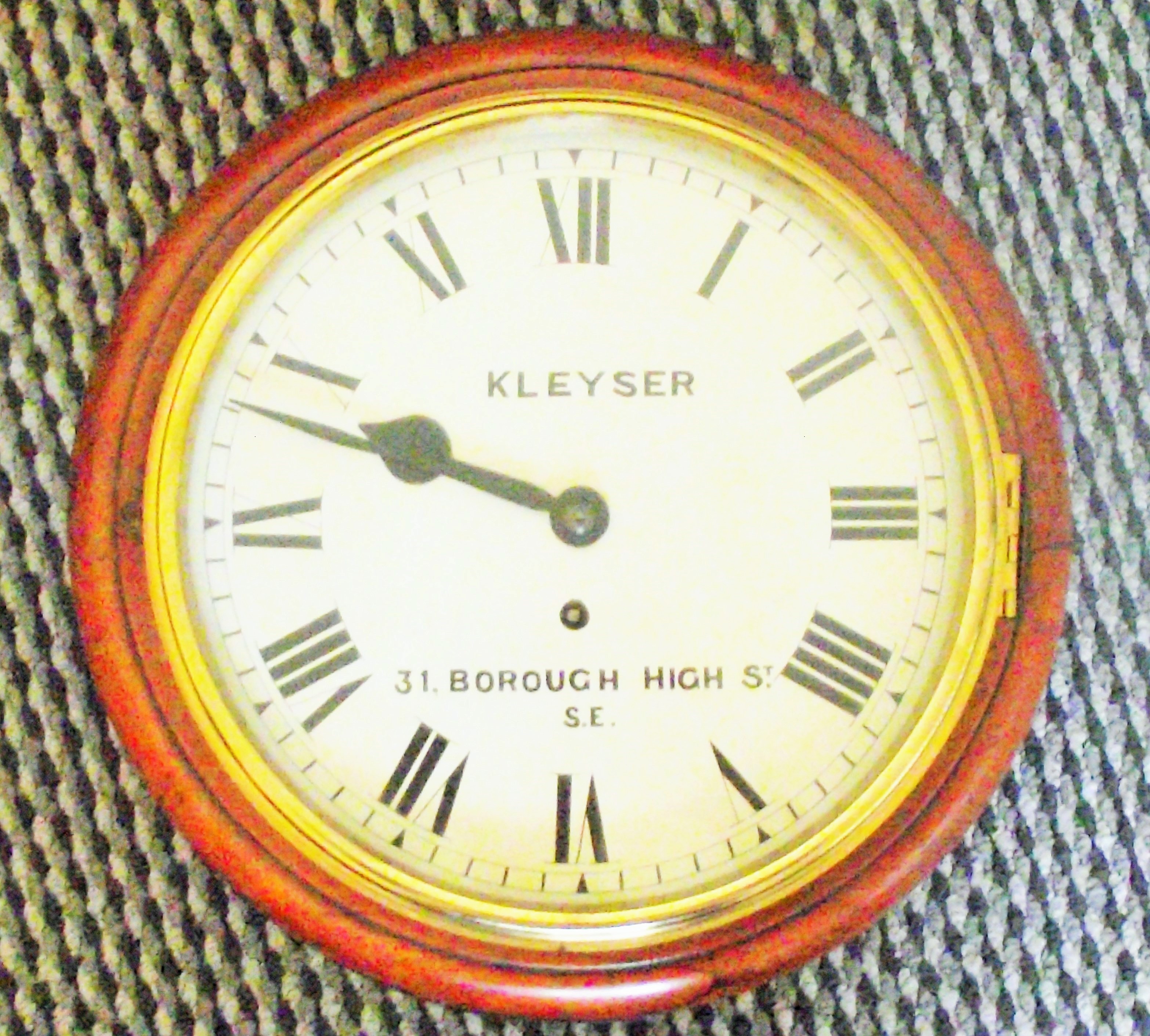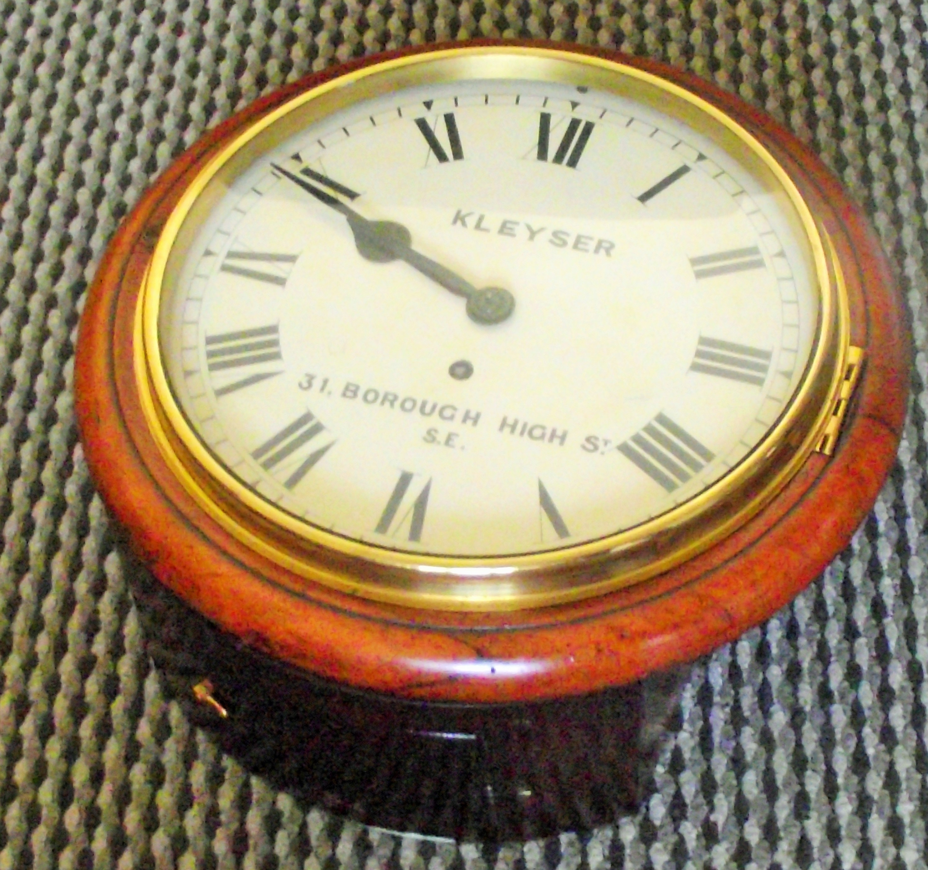 Victorian mahogany fusee wall clock, the circular dial inscribed kleyser 31 Borough High st SE with keys and pendulum