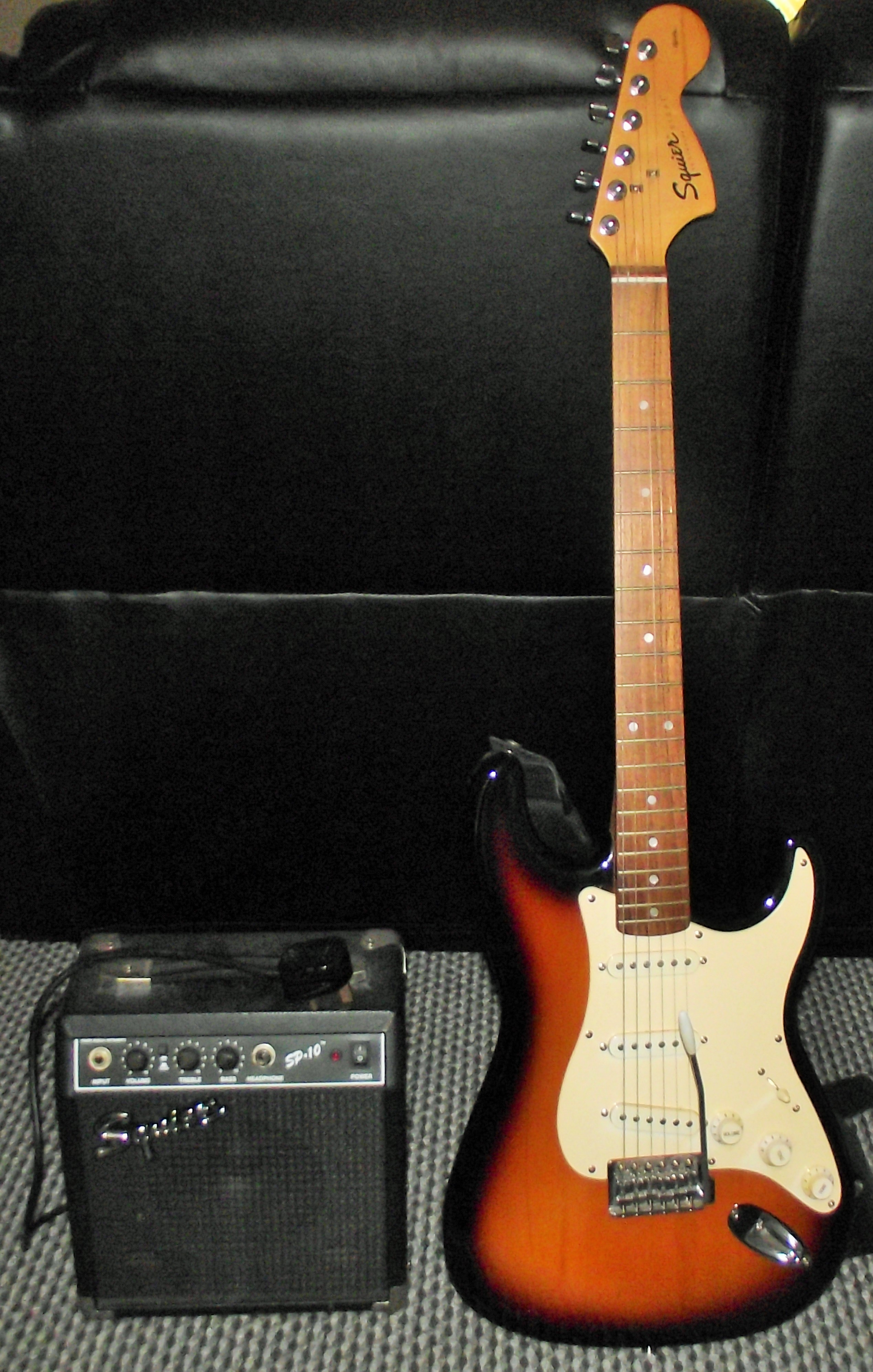 Squire Strat by Fender guitar + Squire SP10 Amp