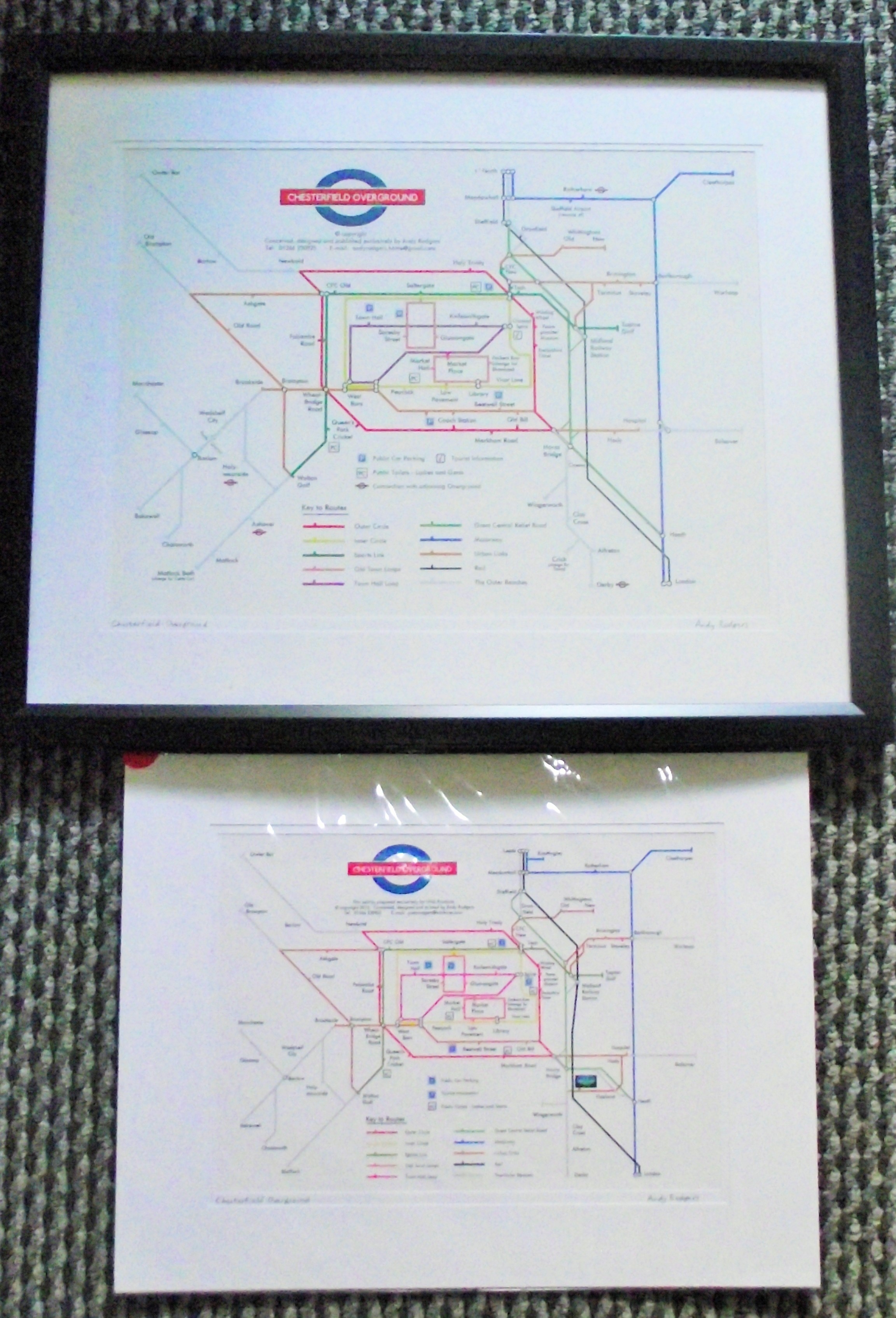2x prints of Chesterfield Overground by Andy rogers one framed one loose in sealed plastic cover both signed in pencil by the artist 40x30cm & 53x43cm