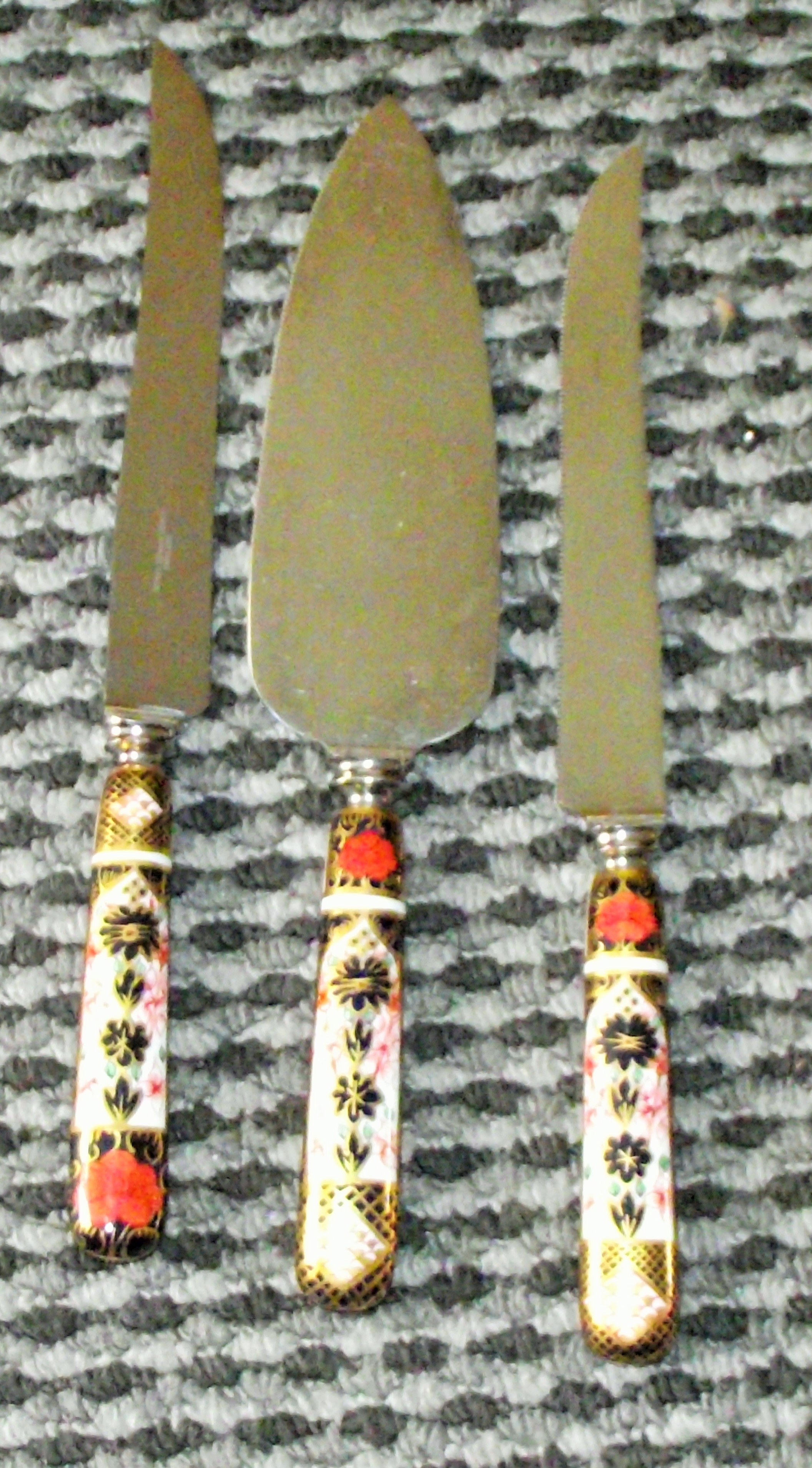 2 x 10″ serated edged Royal Crown Derby imari pattern knives + Crown Derby Imari Cake slice