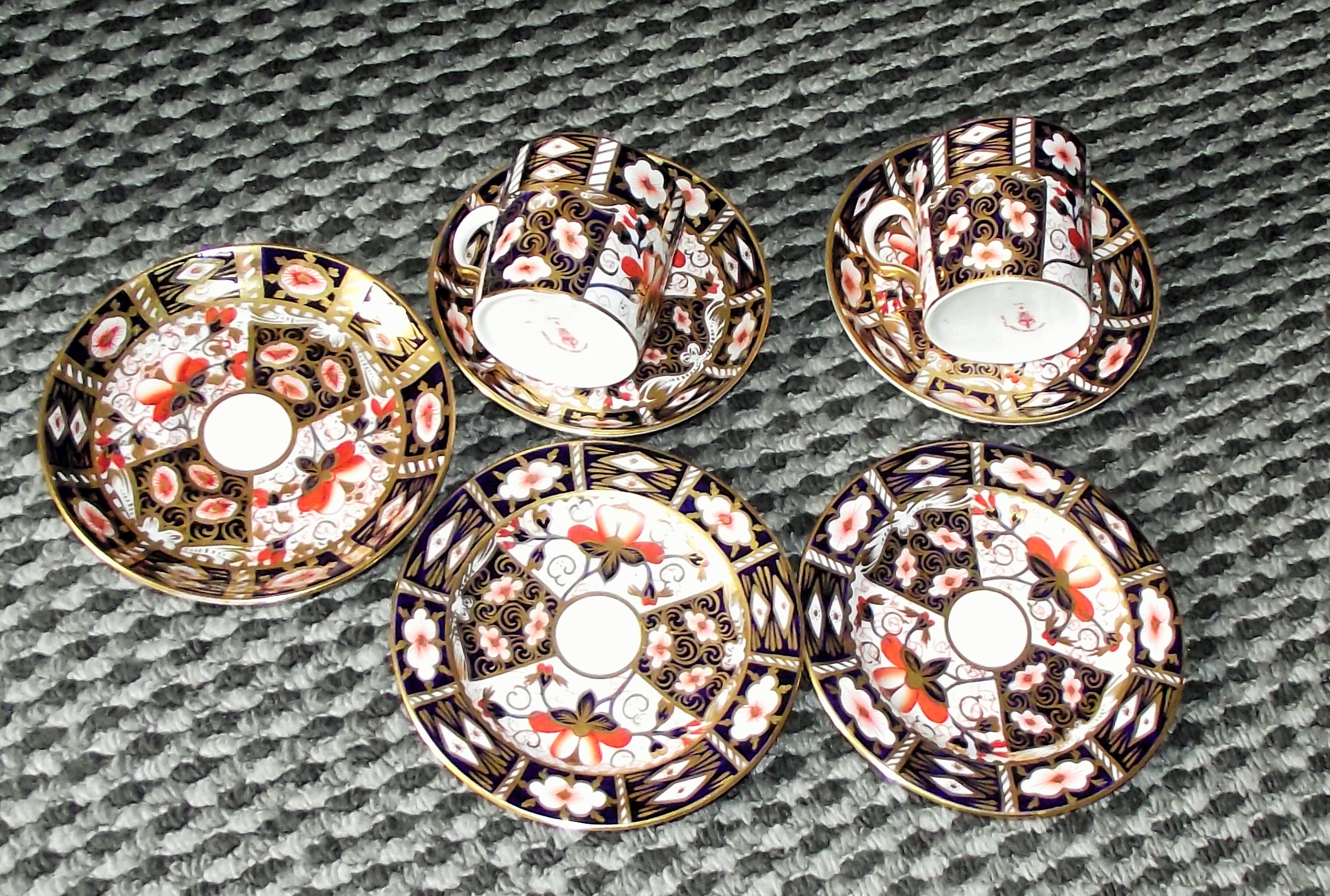 2x Royal Crown Derby Imari 2451 Coffee Can and Saucer + extra saucer & 2 small side plates