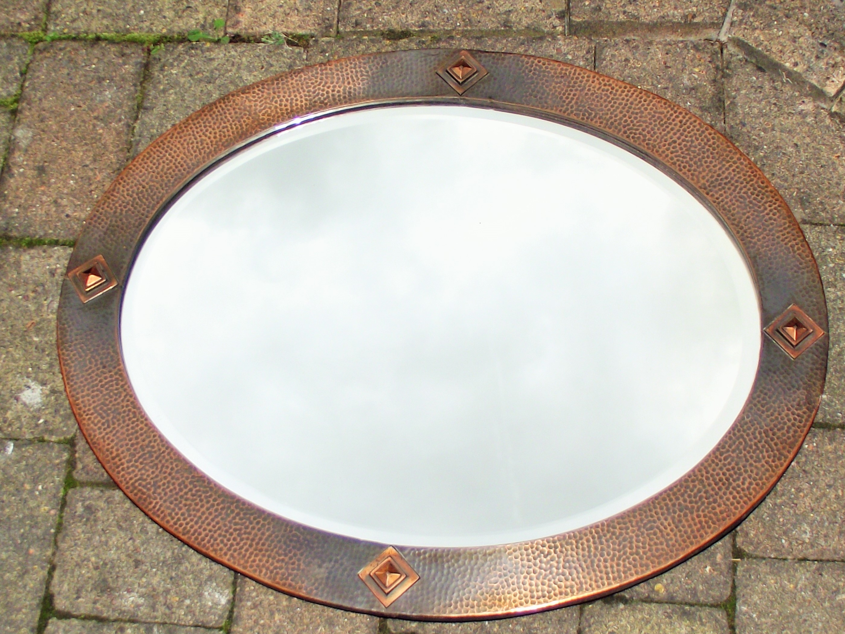 Nice quality Arts & Crafts hand beaten copper oval wall mirror