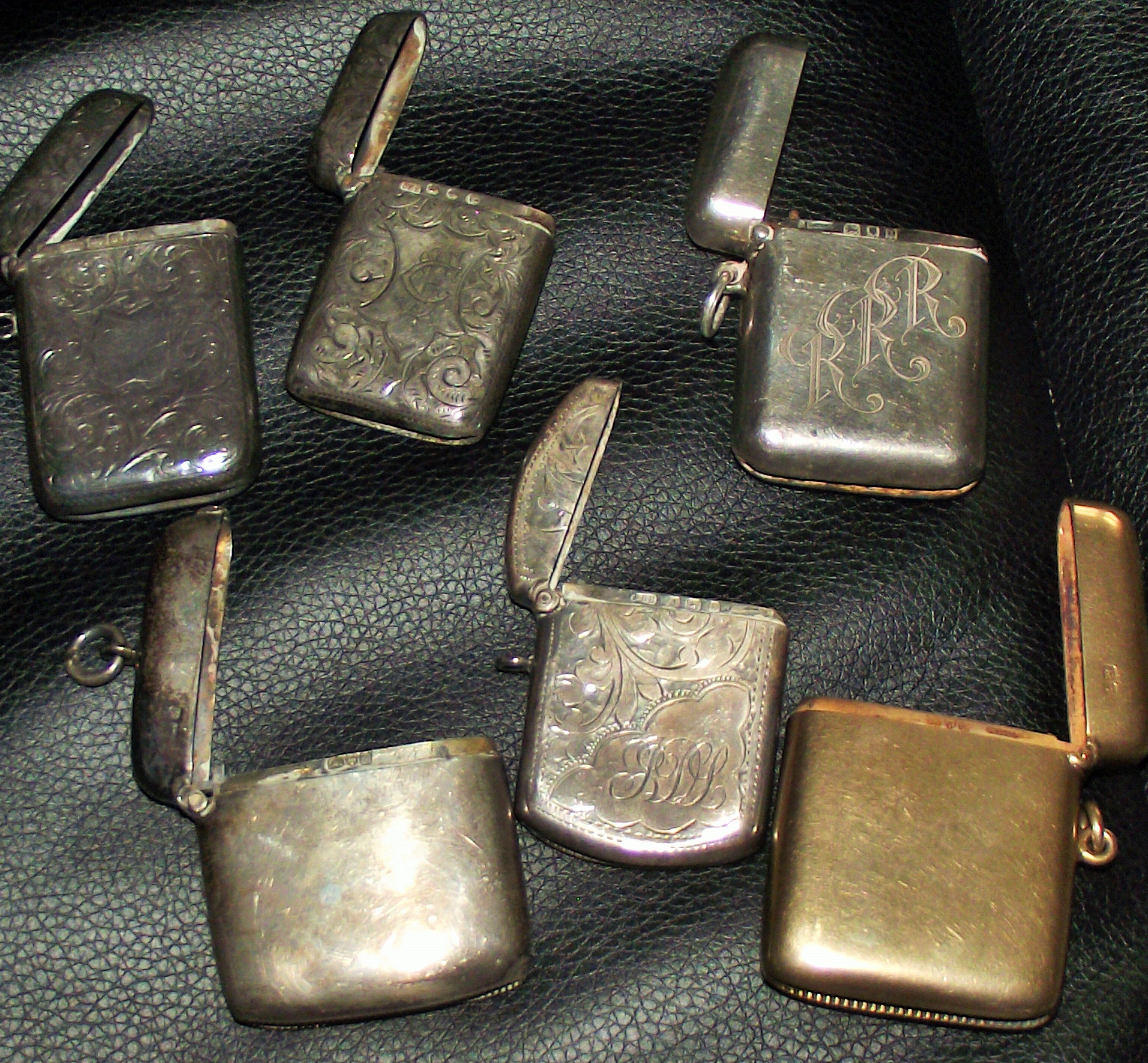 6 x silver vesta cases various maker and dates including a gold plated vesta case 212g approx