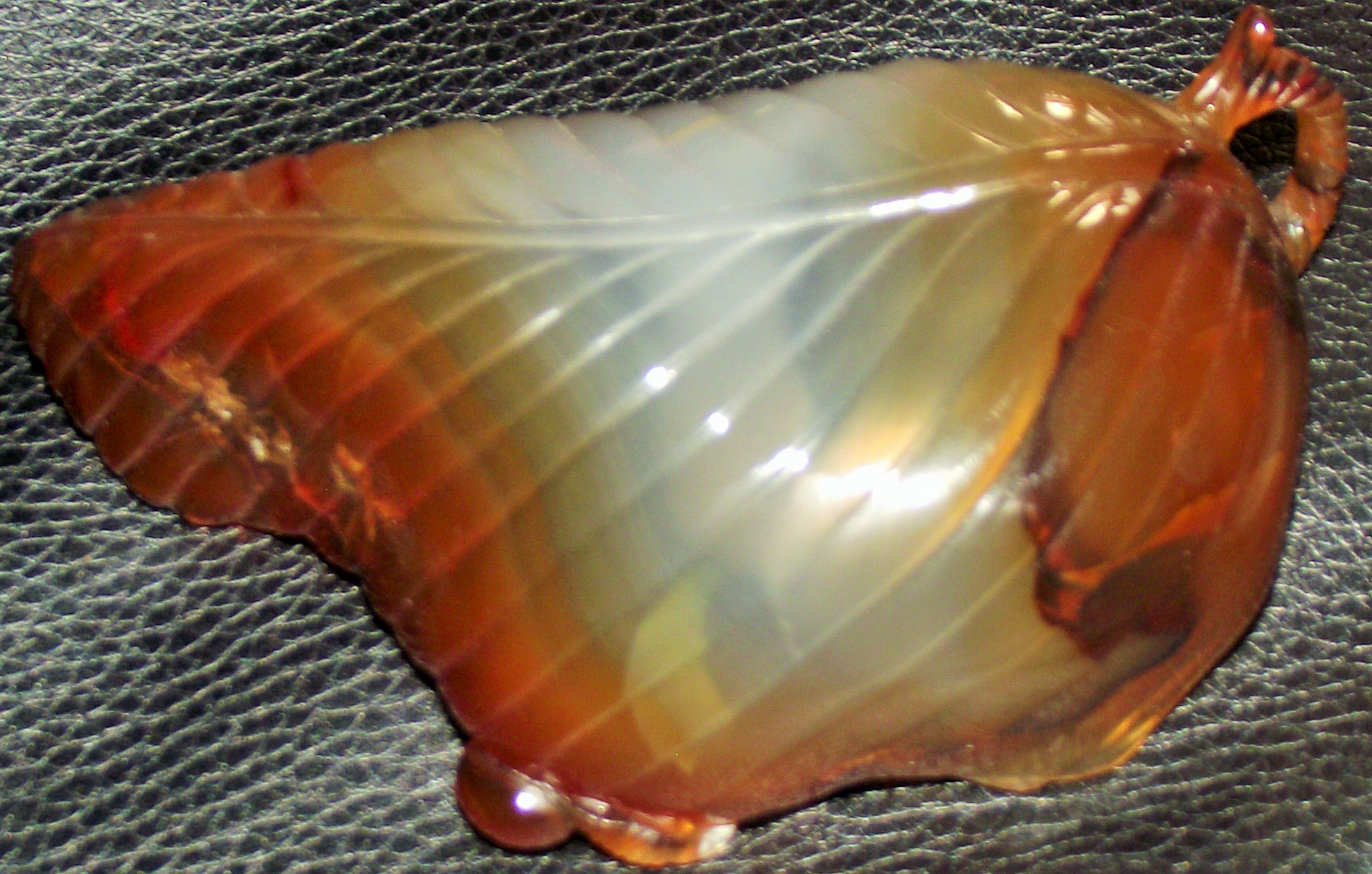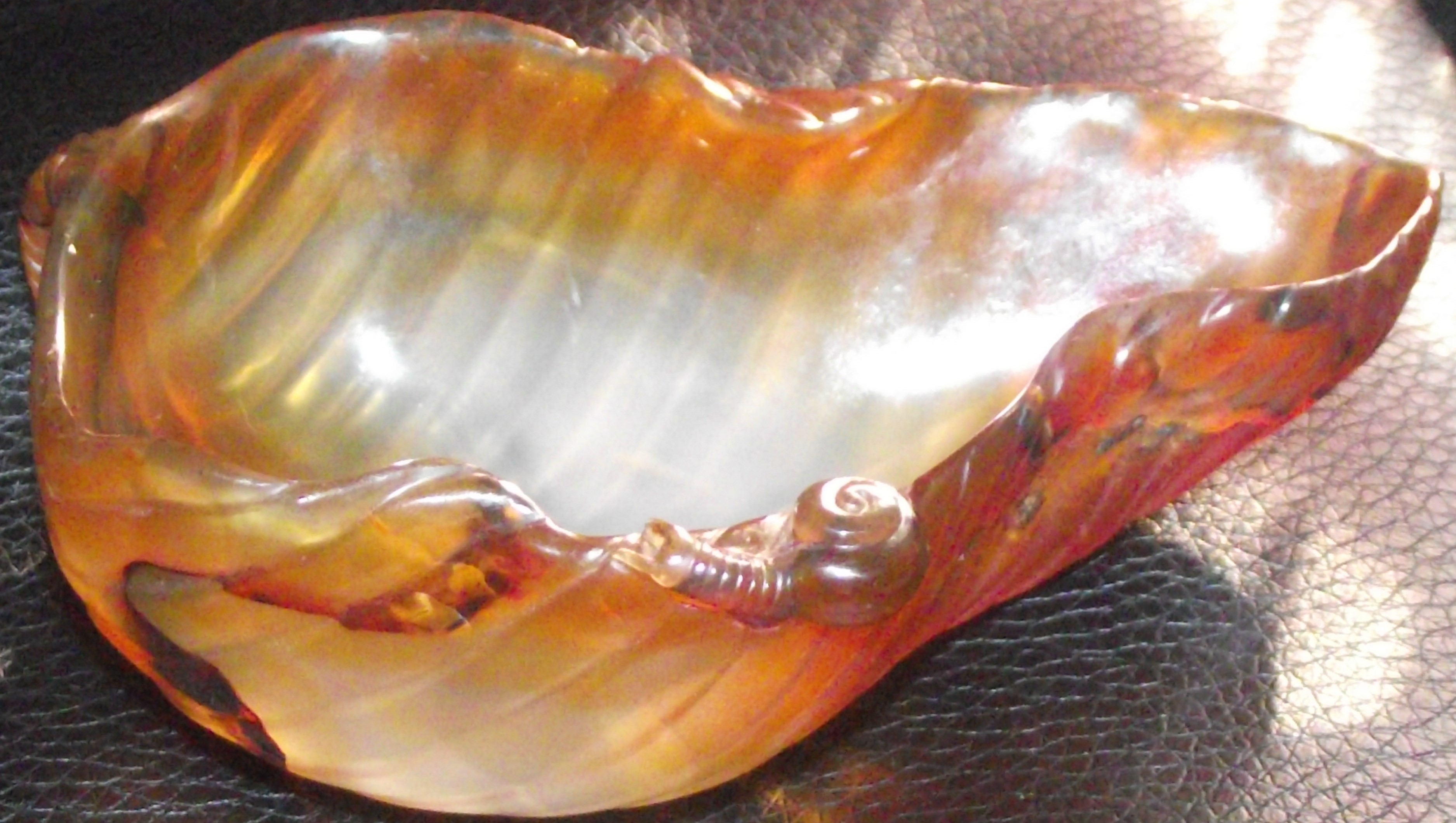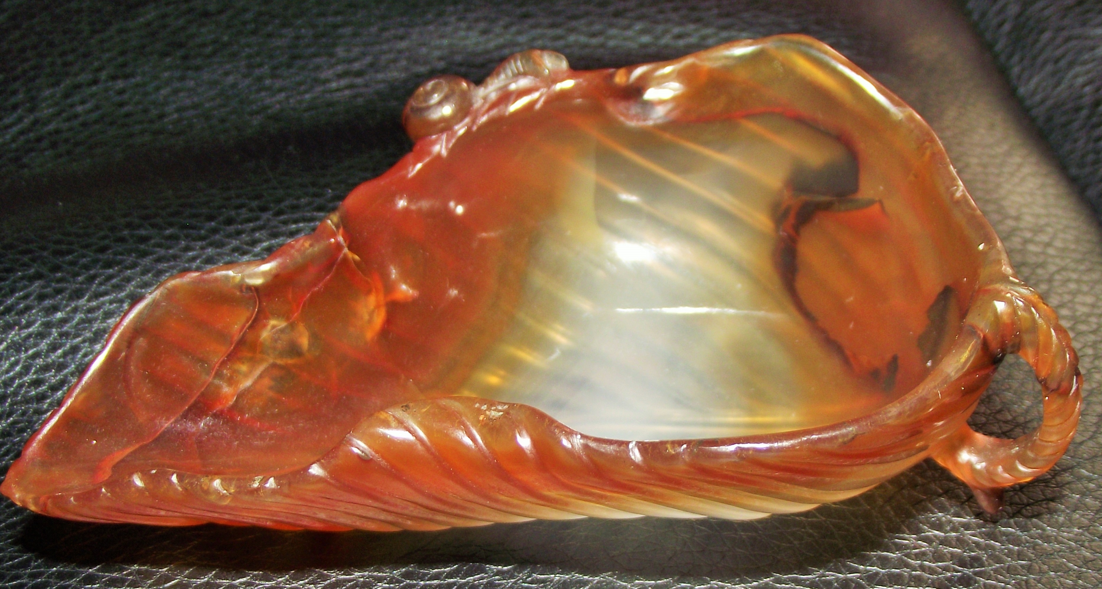 Superb quality 19thc well carved agate brush washer formed as a leaf with a small snail on outer edge