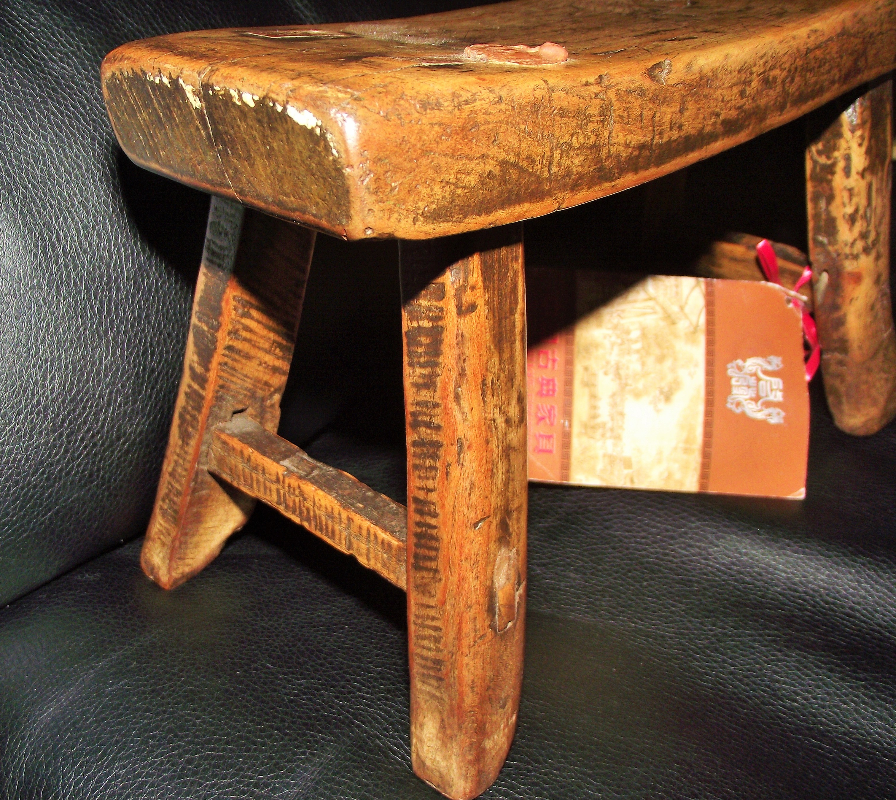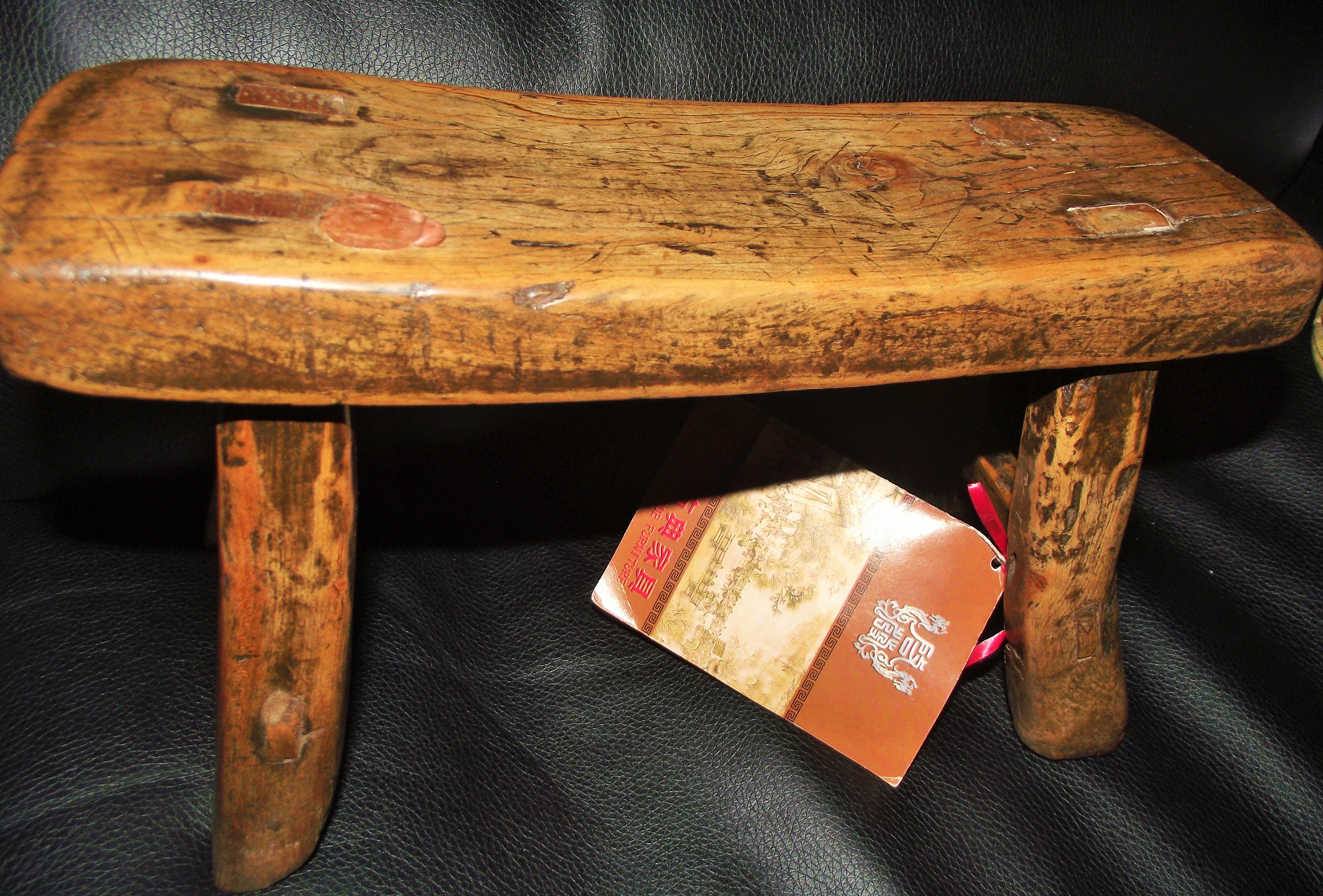 Miniature 80 years old Shandong china elm wood stool 6″ high x 10″ long with certificate