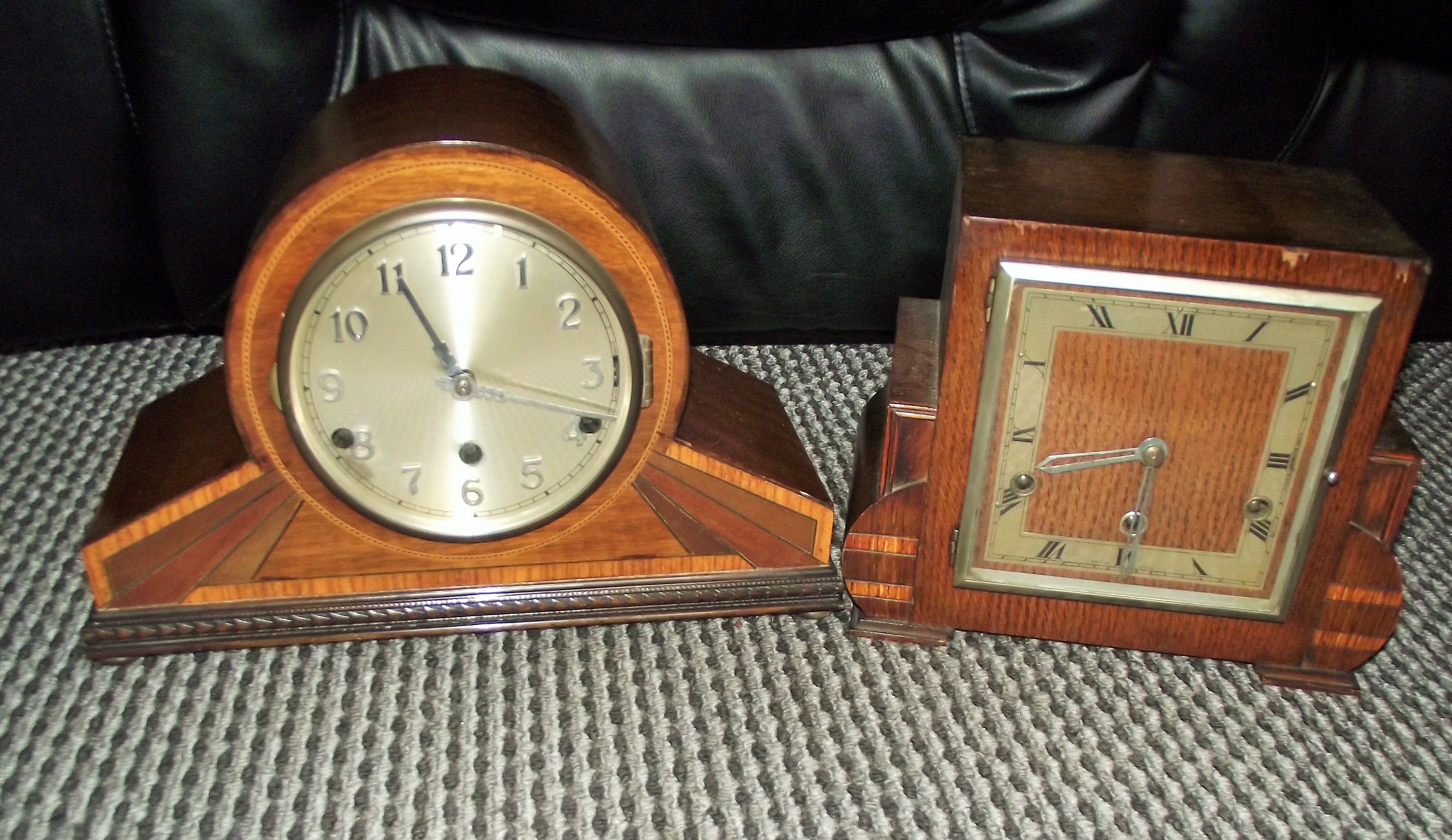 2 x Art deco Chiming mantle clocks with keys and pendulums