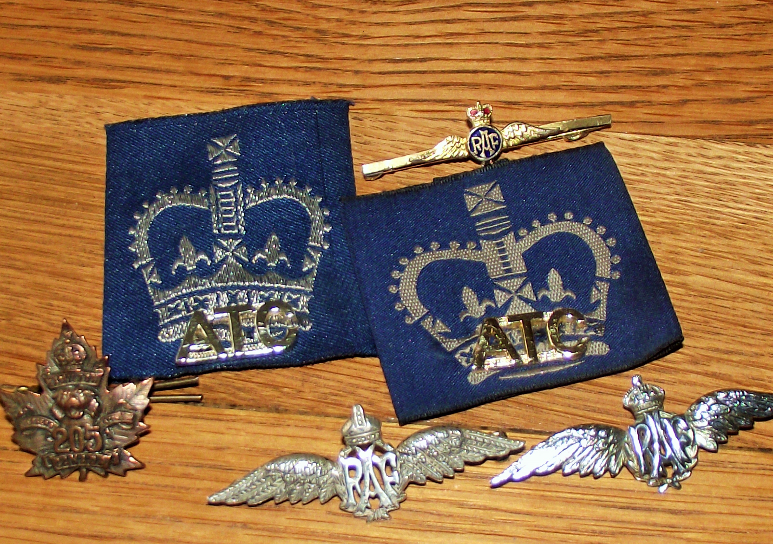 Canada) 205th Infantry (Tiger) Battalion – King’s Crown Gilding Metal Cap Badge with lugs and pin +2x ATC ( Air trainig corps shoulder patches 3 x RAF pin badges