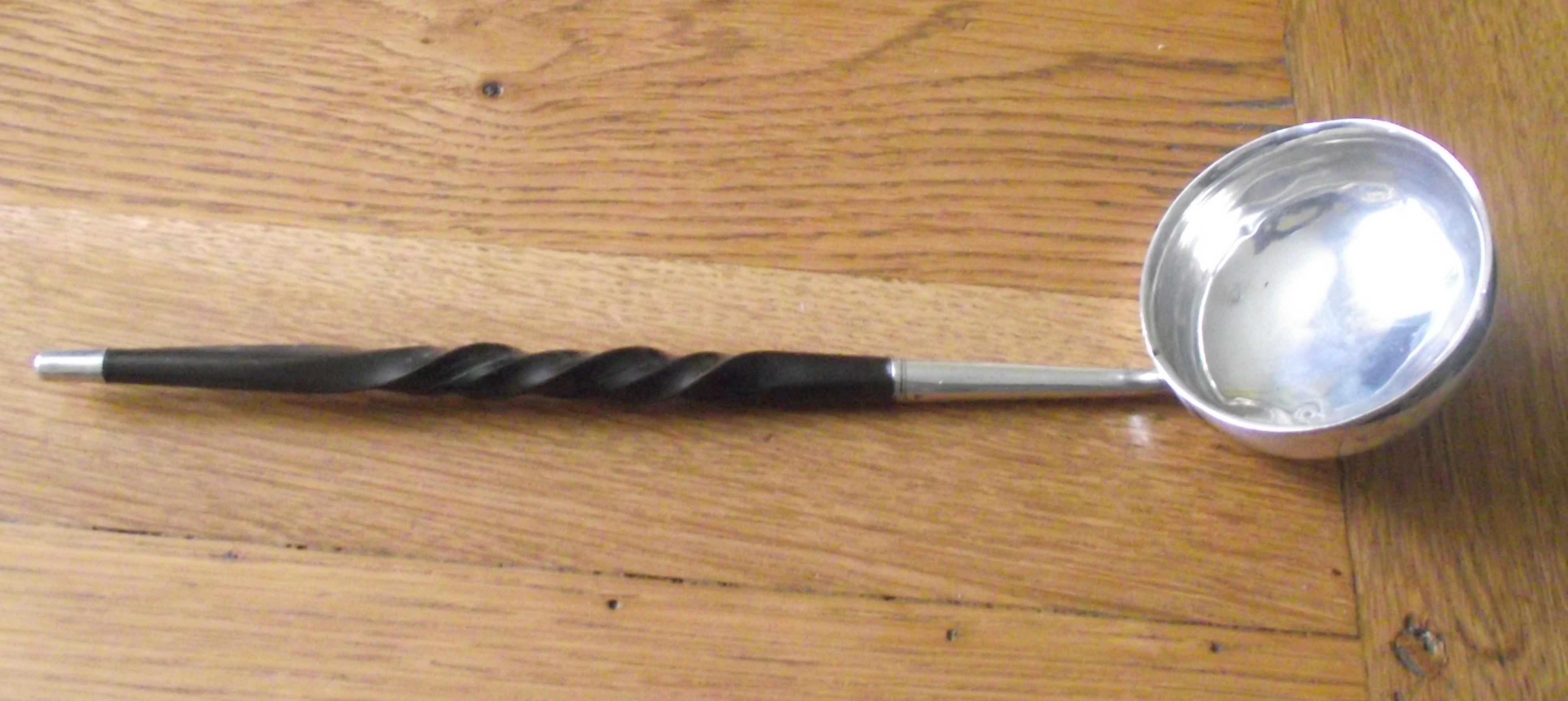 Georgian silver toddy ladle twisted horn handle silver tip ( marks rubbed )