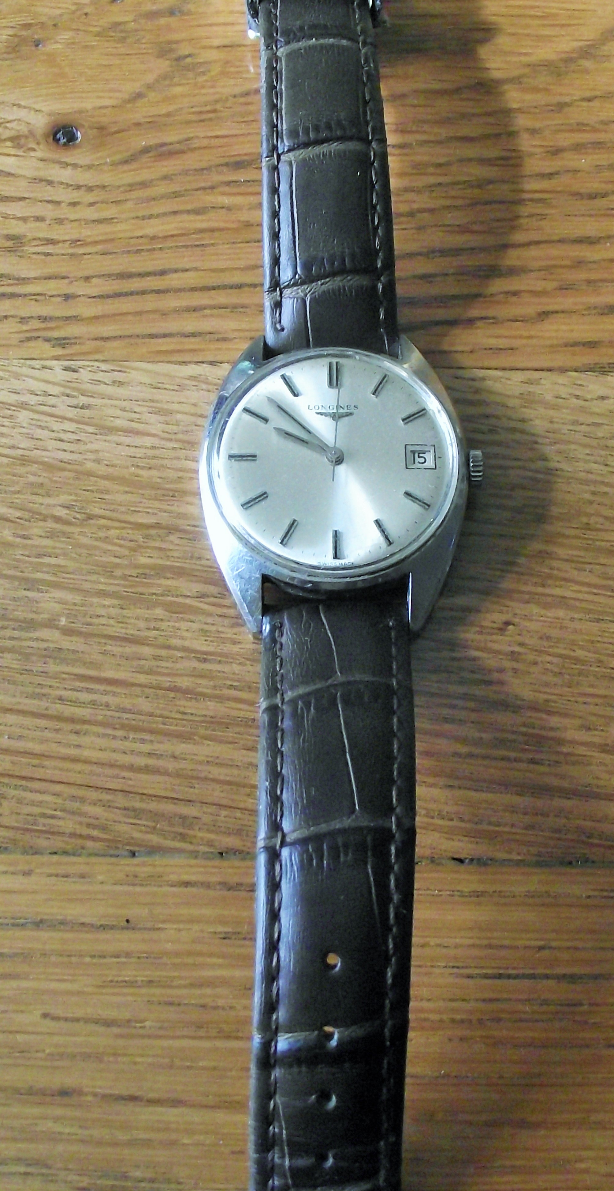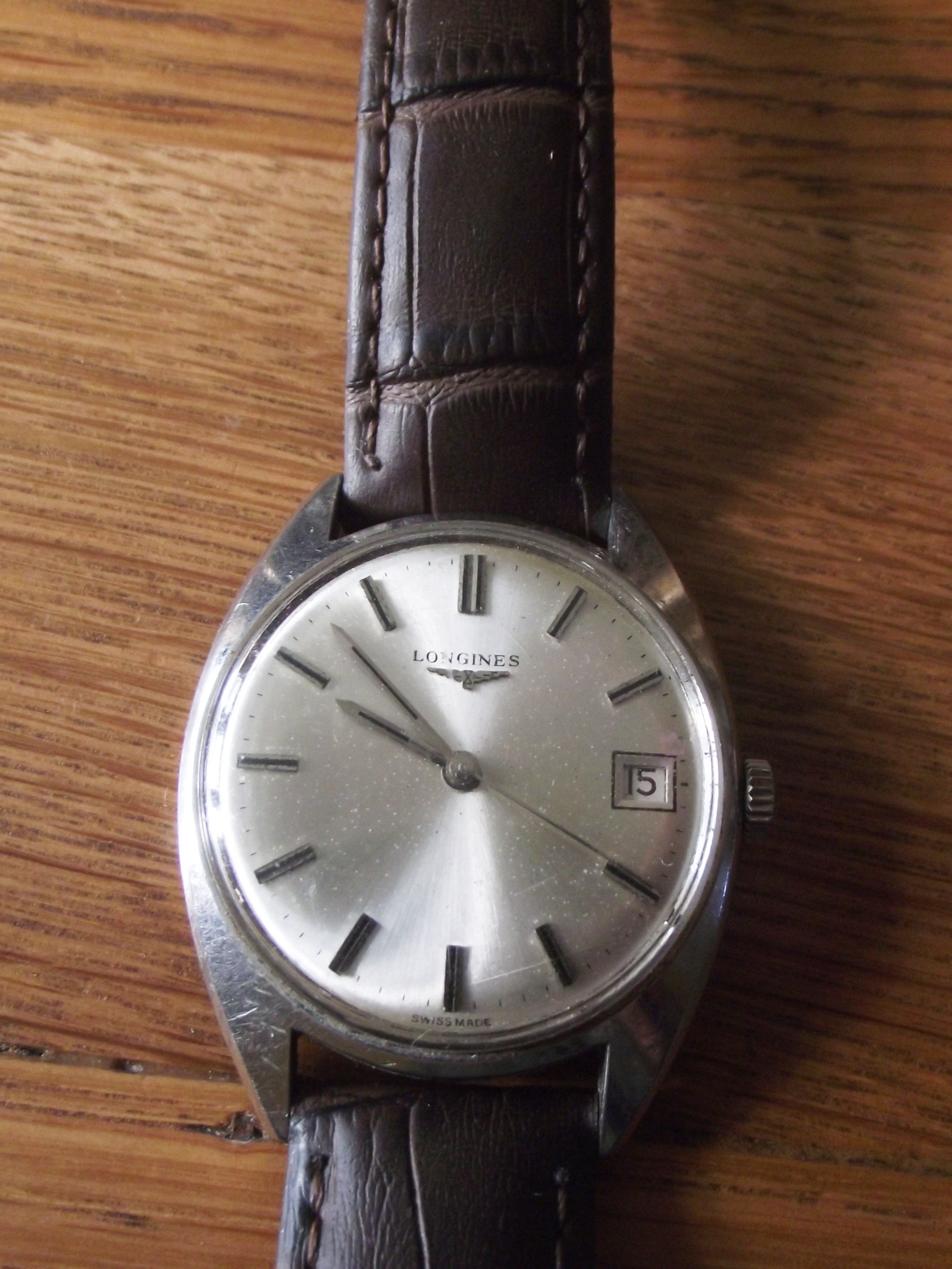 Vintage Men’s Swiss-Made Longines Mechanical Watch with date function Stainless Steel Watch on leather strap ( working when wound )