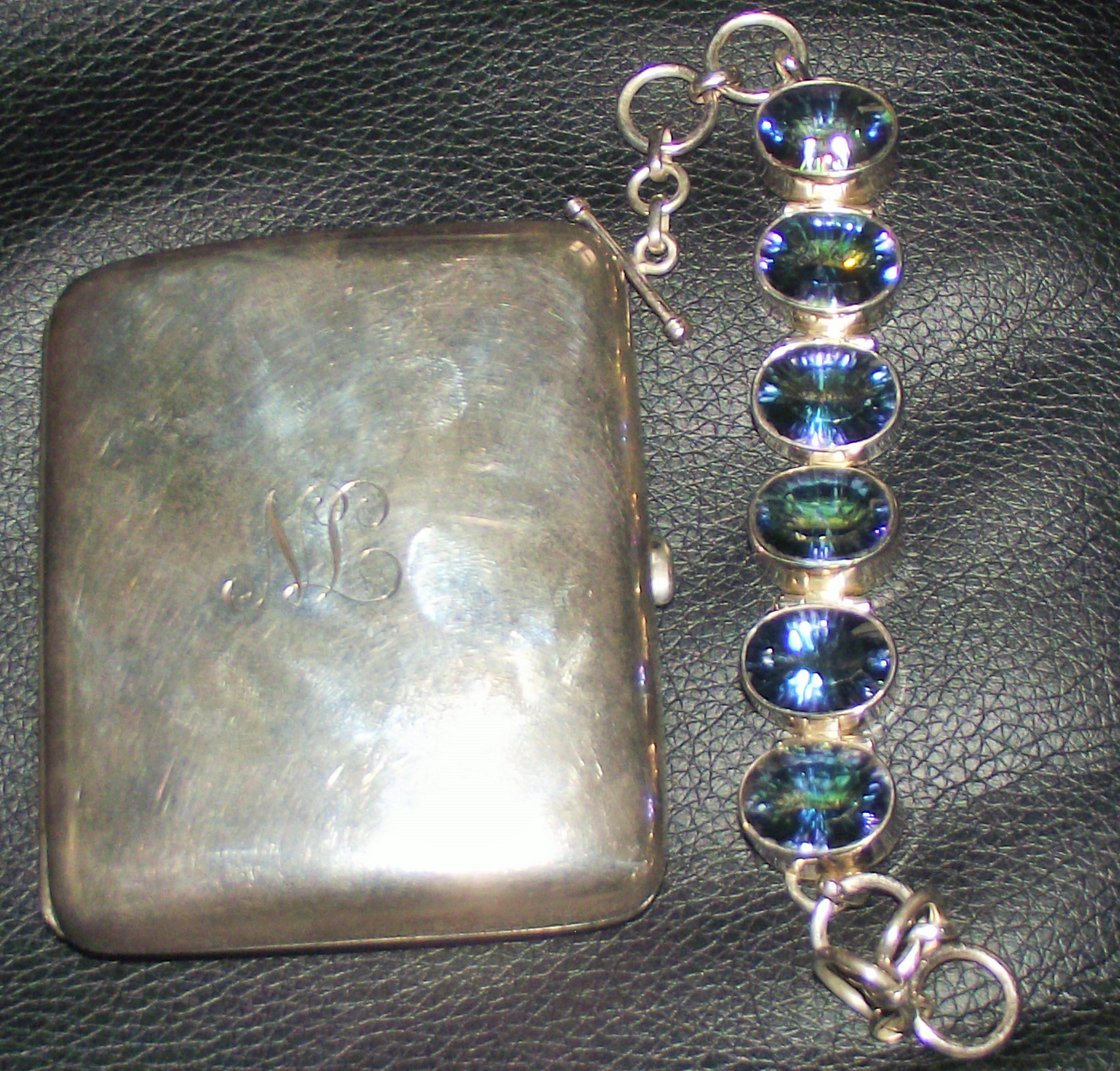 fully marked silver chunky stone set bracelet birmingham 2011 40g approx + Silver presentation cigarette case samson Morden London1919 94g approx gross weight for both 134g approx