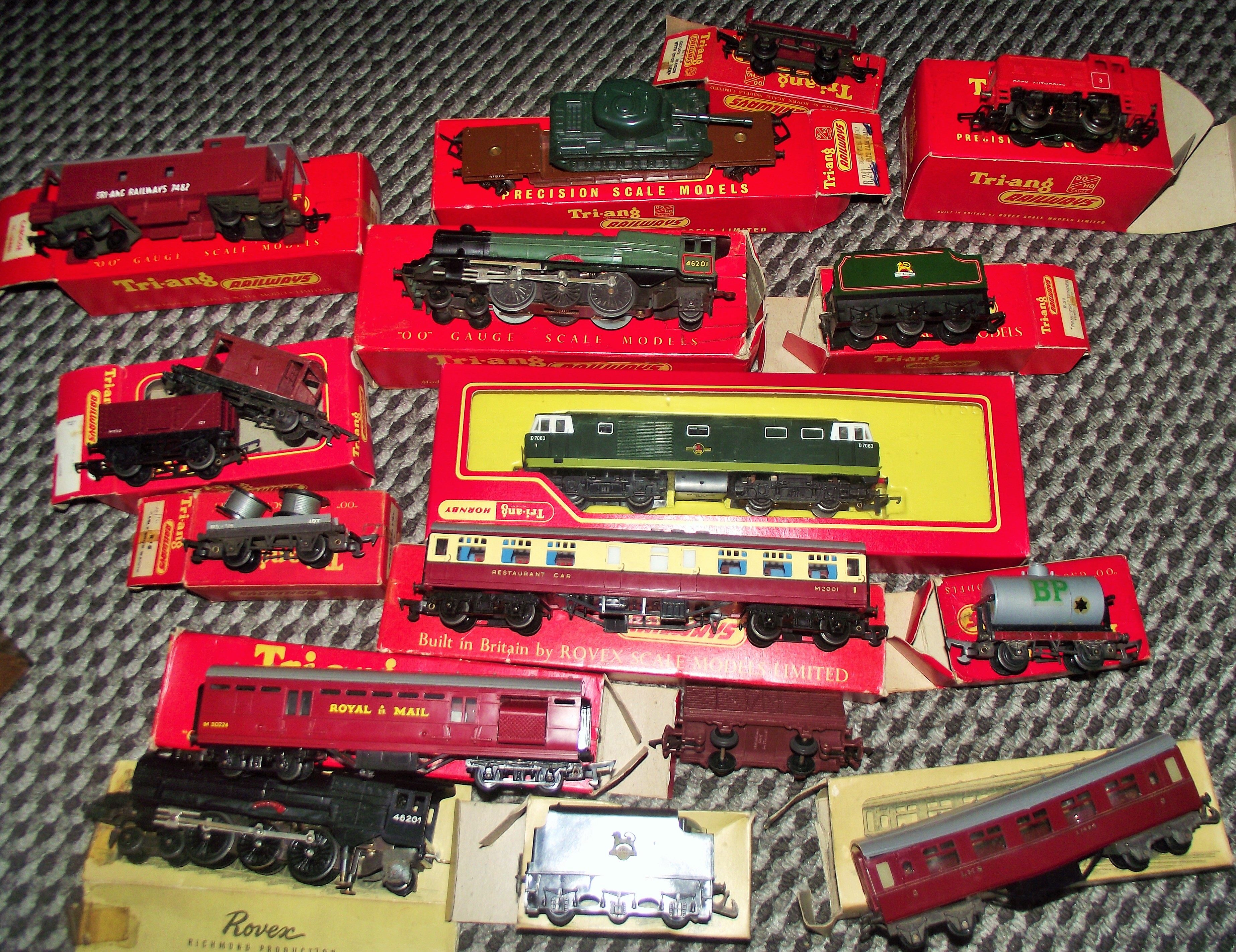 Collection oof trains carriages bogies etc + Rare Rovex /triang oo carriage , Princess elizabeth 46201 train & tender