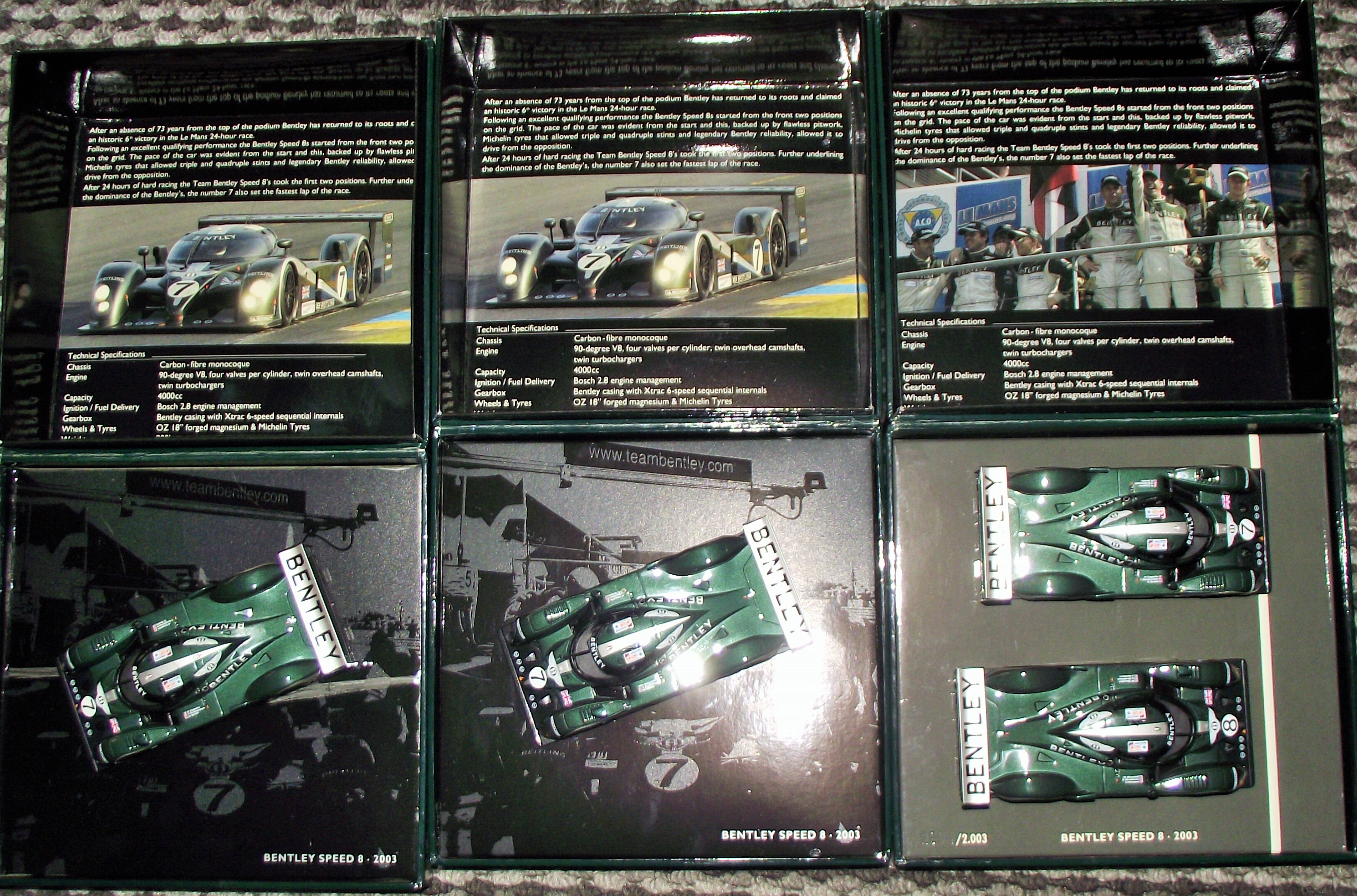 3 x BENTLEY EXP SPEED 8 2003 1/43 CAR MODEL BY MINICHAMPS in original Bentley boxes