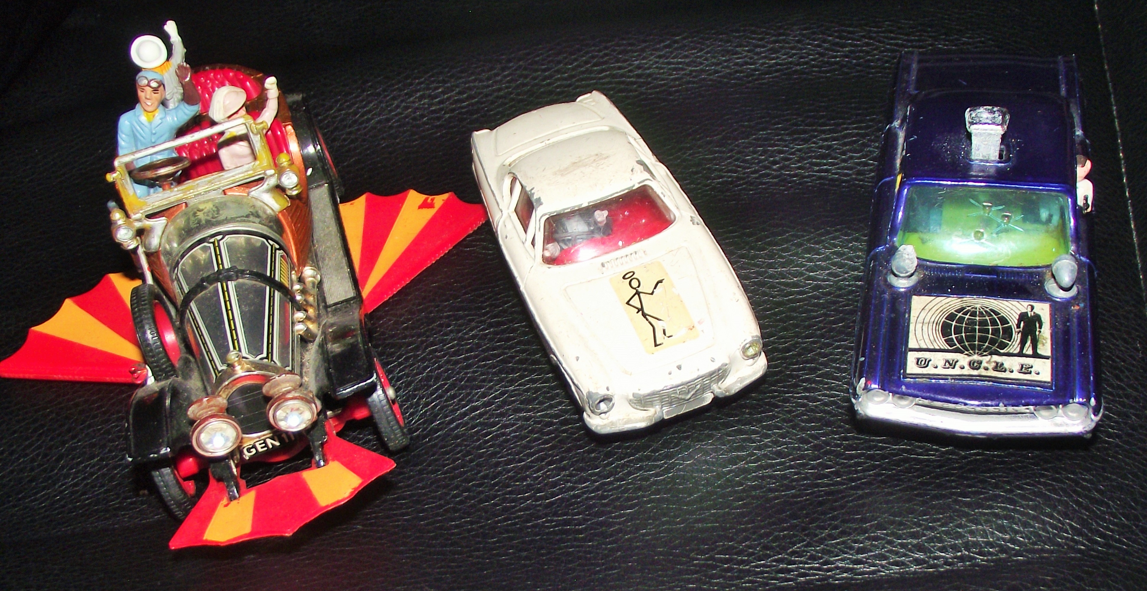 3x iconic Dinky model collectors cars , Chitty Chitty Bang bang , The saint , Uncle Thrush shooting car